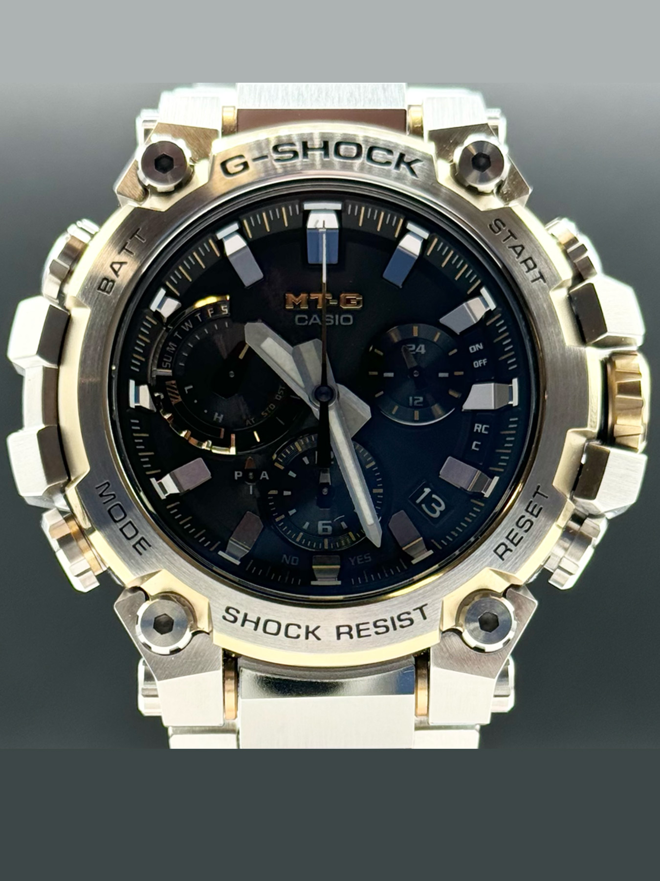 This Casio G-Shock MTG-B3000D-1A9 is in EXCELLENT condition. This watch includes its original box, instruction manual, and warranty card dated for 2024. Extra stainless steel bracelet links. This watch has been fully authenticated and certified by Exquisite Timepieces.