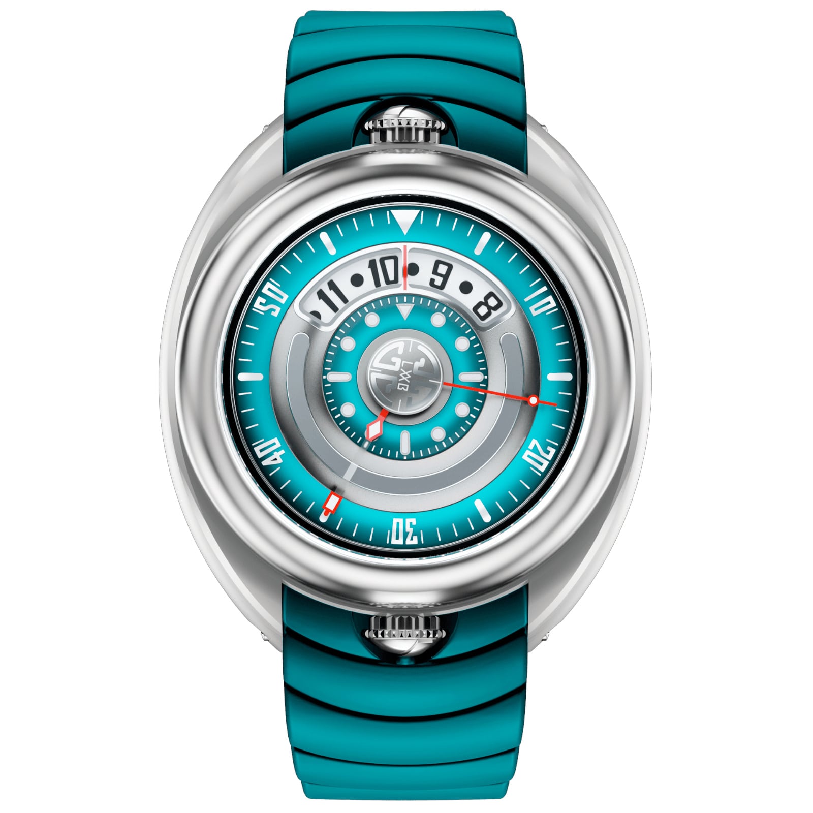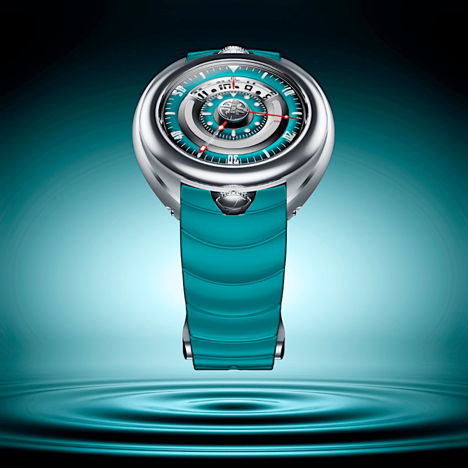 - This timepiece features a 44mm steel case paired with a high quality rubber strap. It showcases a distinctive turquoise dial and is powered by a precise automatic winding movement. The watch is designed with a water resistance of up to 200m.