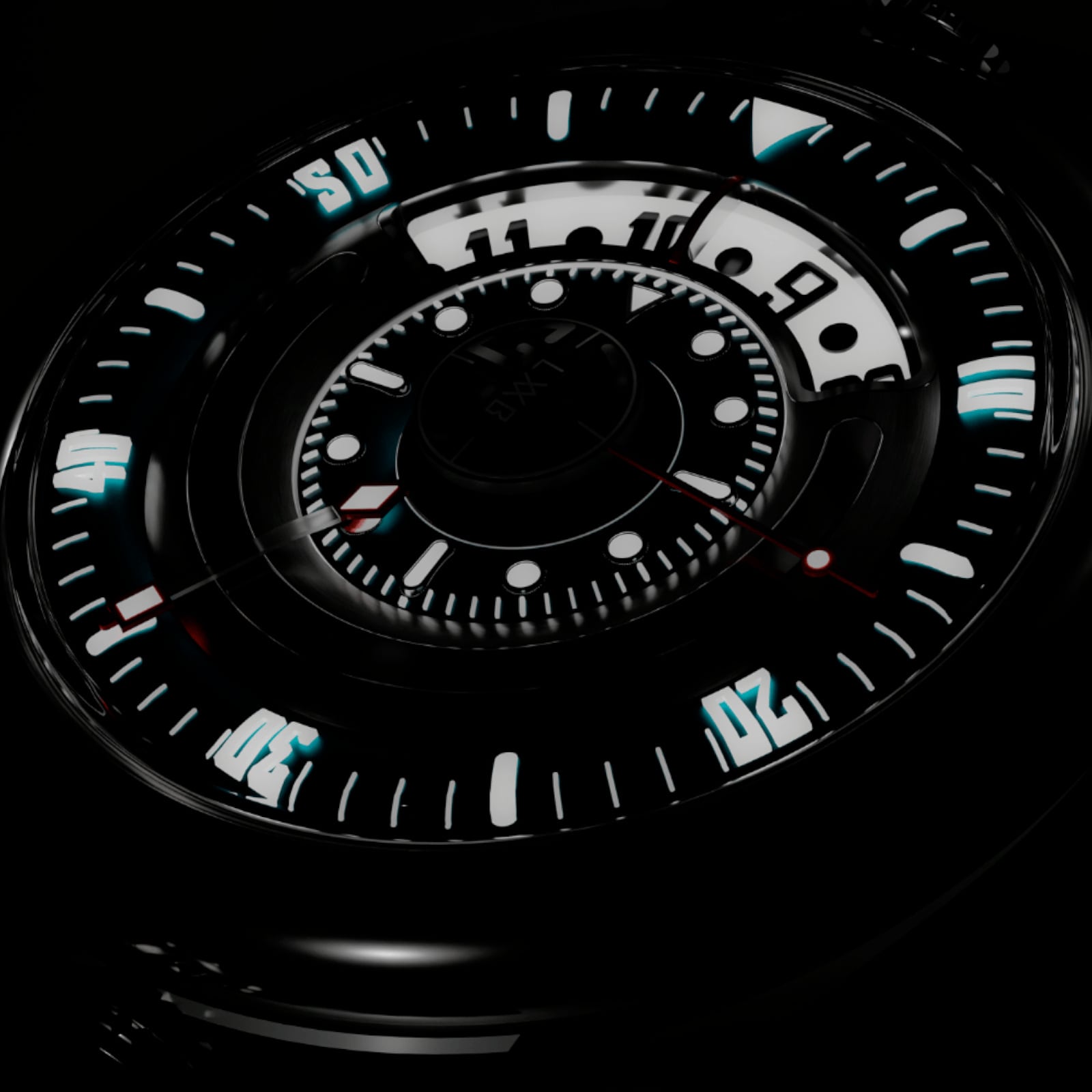 Design: Inner ring with minute indications. Caseback secured with 4 screws. Double crown – H12 time setting / H6 inner ring setting.