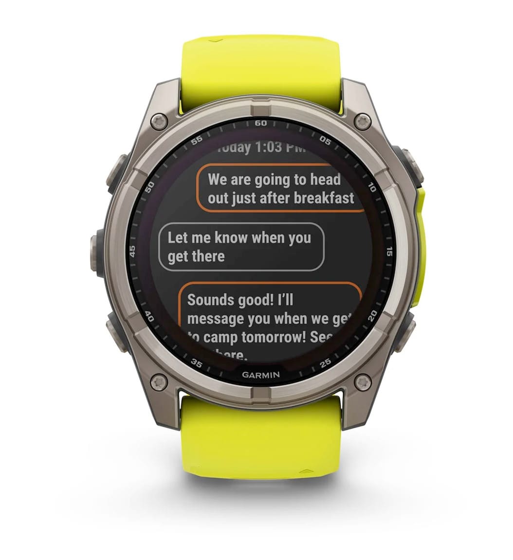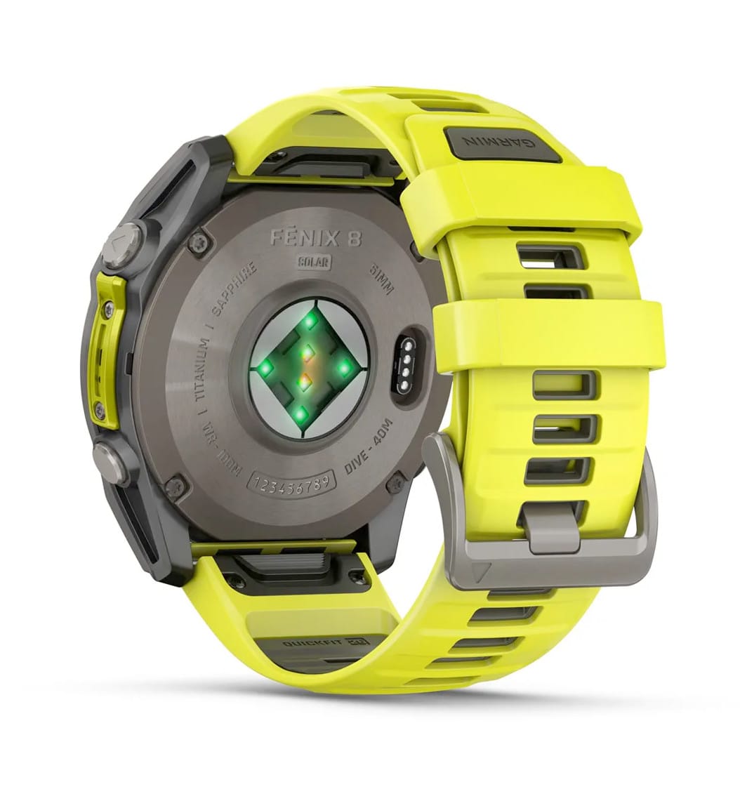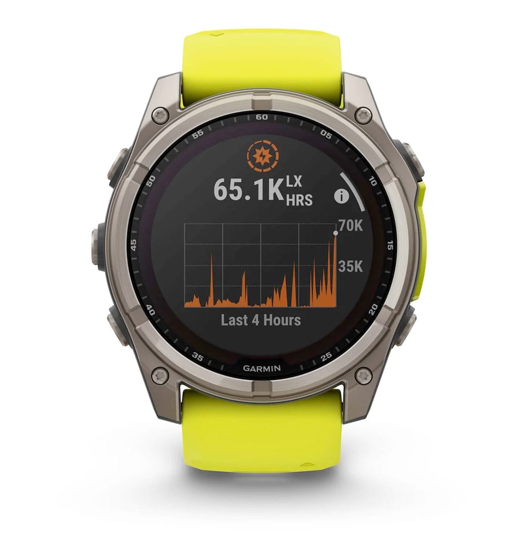 For serious athletes and adventurers who want to push beyond their limits, this premium multisport GPS smartwatch is built to perform and styled for larger wrists — with advanced strength training features, dive capability, an internal speaker and mic for voice features, a built-in LED flashlight and up to 48 days of battery life with the Power Sapphire™ solar charging lens.