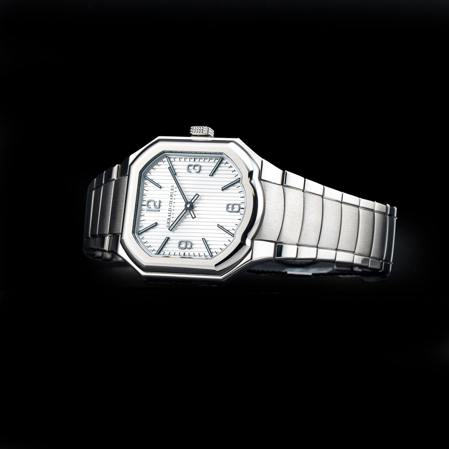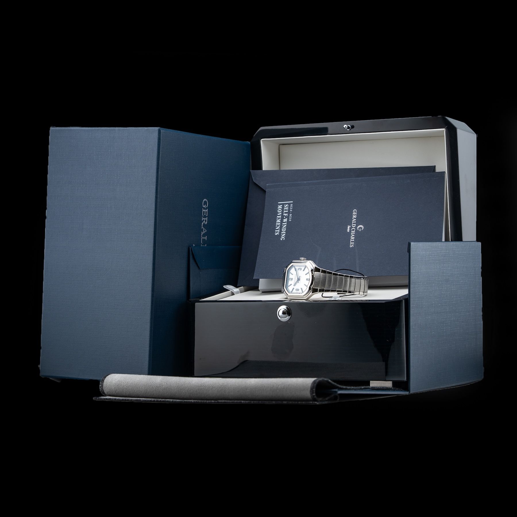 This Gerald Charles ML10-A-18 Maestro 10 Silver Sunburst Dial is in GREAT condition, it has box, papers and warranty card not dated. This watch has been fully authenticated and certified by Exquisite Timepieces. Please note, the photos shown are of the actual watch you will receive.