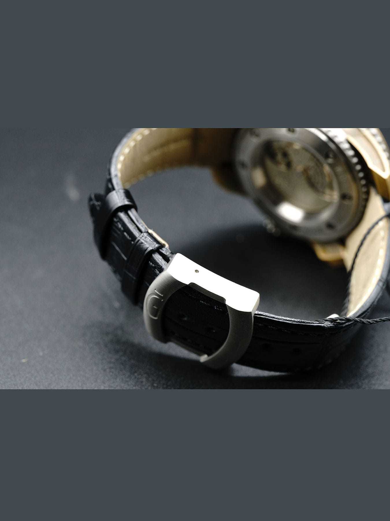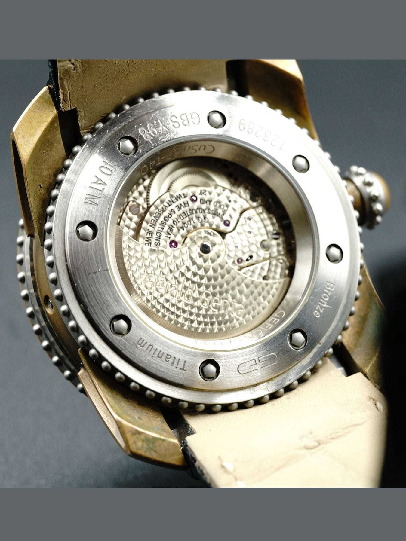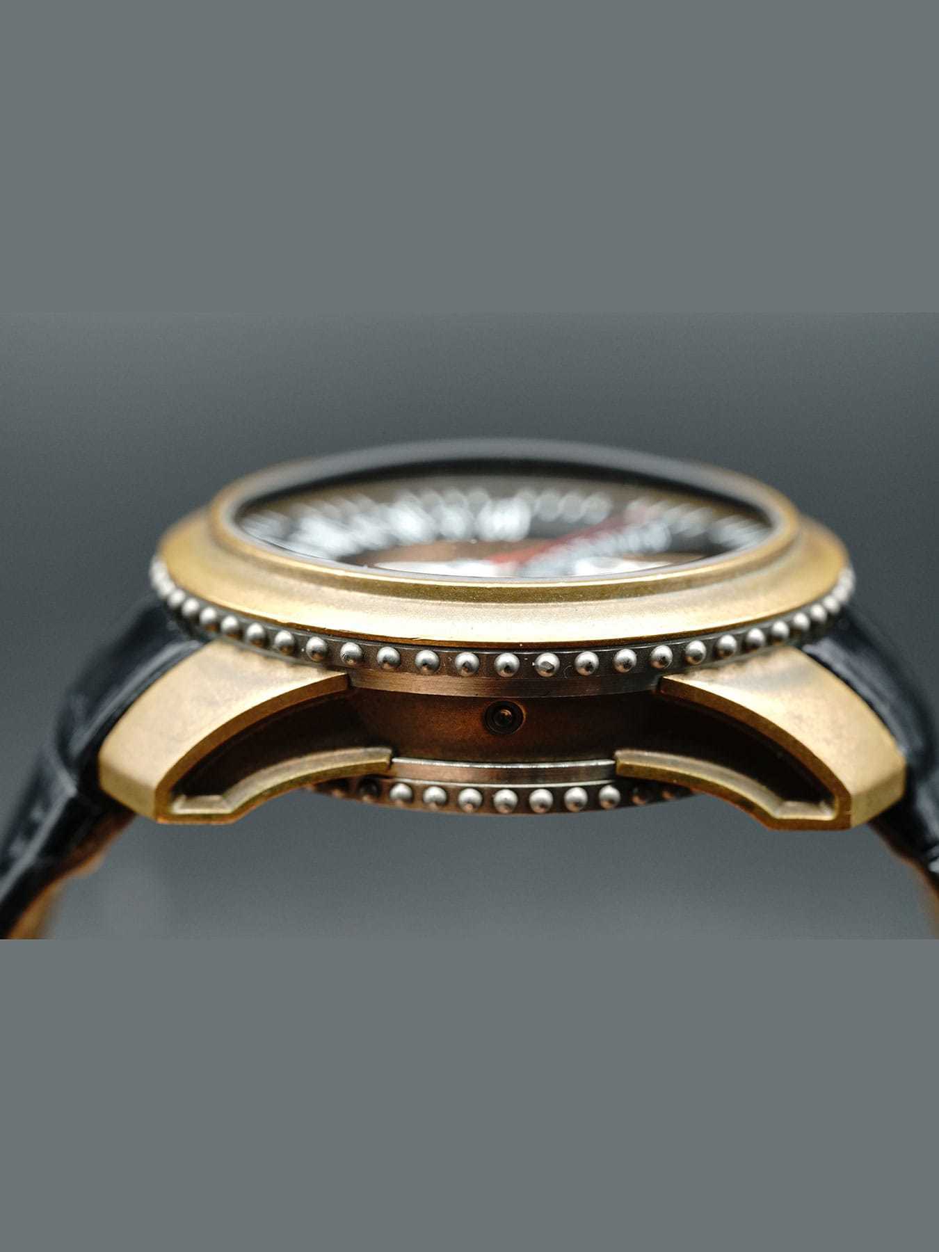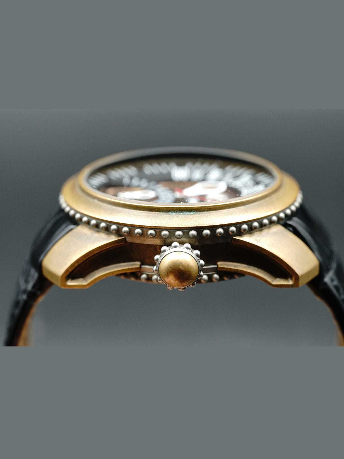 - This timepiece features a 46mm bronze case paired with a high quality leather strap. It showcases a distinctive brown dial and is powered by a precise automatic winding movement.