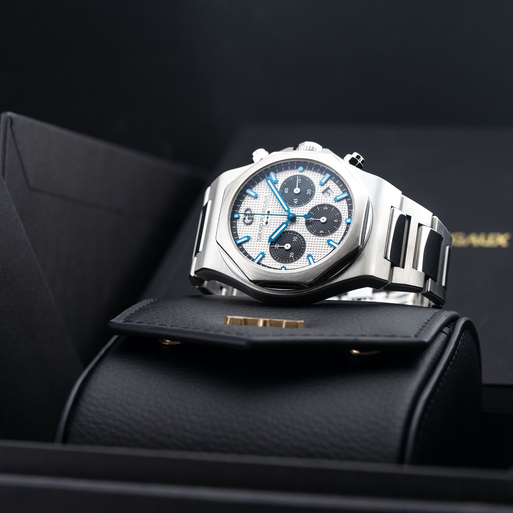 This Girard Perregaux Laureato 81020-11-131-11A is in GREAT condition. This watch includes its Original Box. This watch has been fully authenticated and certified by Exquisite Timepieces. Please note, the photos shown are of the actual watch you will receive.