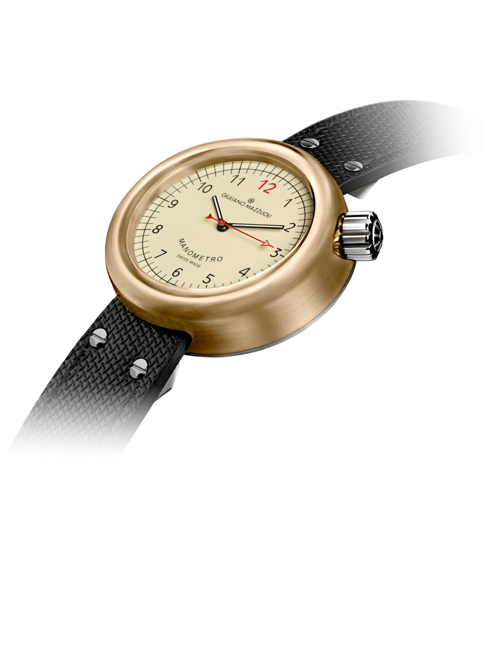 For years Giuliano Mazzuoli had a dream of creating a watch with an innovative design, different than any other watch available on the market. The inspiration for his watch came one day when he looked at a pressure gauge. It was in this object that he found his Manometro (it means “pressure gauge” in Italian) watch.