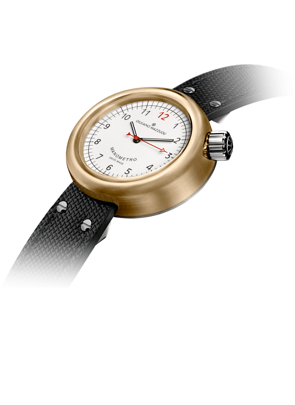 For years Giuliano Mazzuoli had a dream of creating a watch with an innovative design, different than any other watch available on the market. The inspiration for his watch came one day when he looked at a pressure gauge. It was in this object that he found his Manometro (it means “pressure gauge” in Italian) watch.