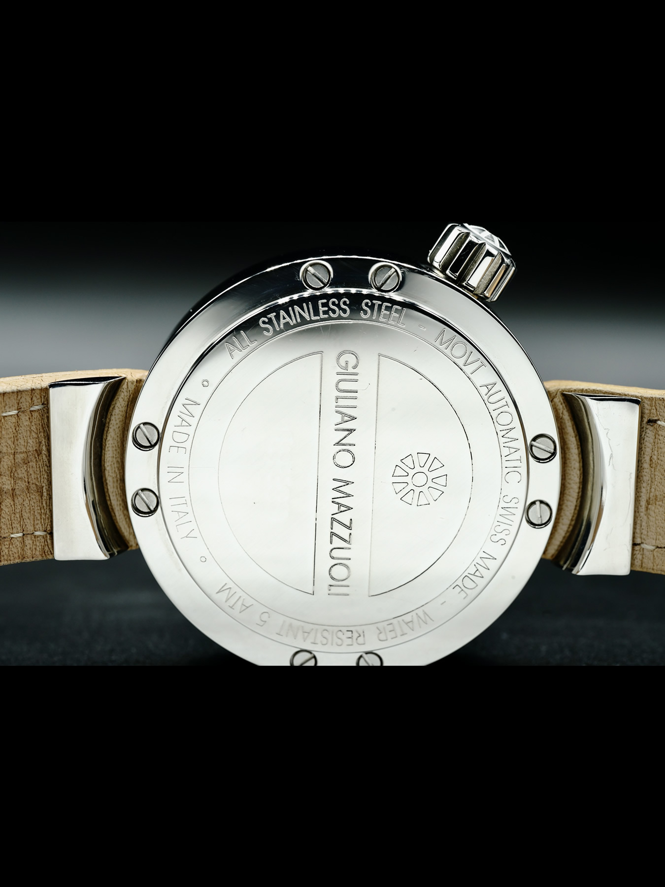 This Giuliano Mazzuoli MANOMETRO MRP01N is in EXCELLENT condition. This watch includes its original box and instruction manual.