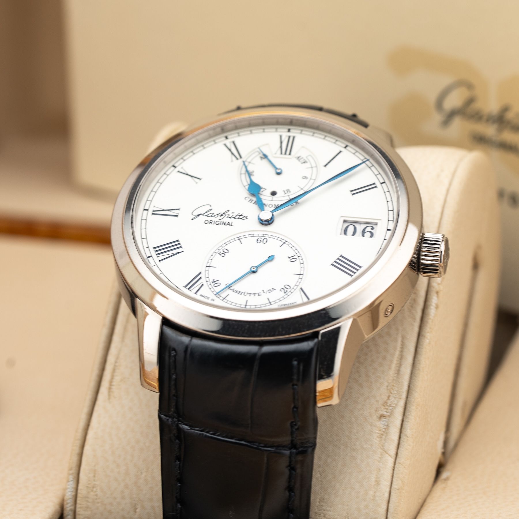 This Glashütte Original 1-58-01-01-01-04 Senator Chronometer is in GREAT condition. This watch includes its Original Box, Original Papers. This watch has been fully authenticated and certified by Exquisite Timepieces. Please note, the photos shown are of the actual watch you will receive.