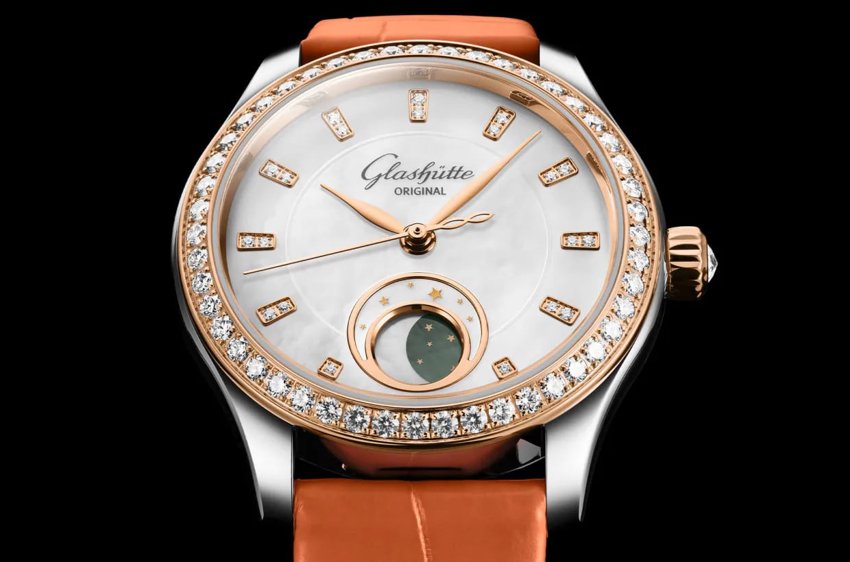 Despite its reduced size, the automatic calibre 35-14 guarantees a reliable and precise heartbeat of 28,800 A/h. The finely finished movement has a running time of 60 hours and can be viewed through the scratch-resistant sapphire crystal case back. The rotor plate with a fine guilloché pattern can also be admired, which is made of solid red gold for the first time at Glashütte Original.