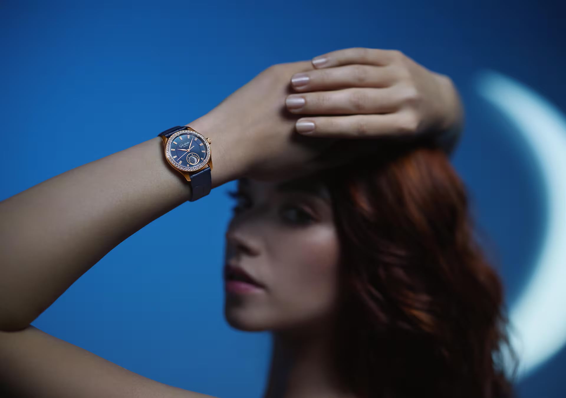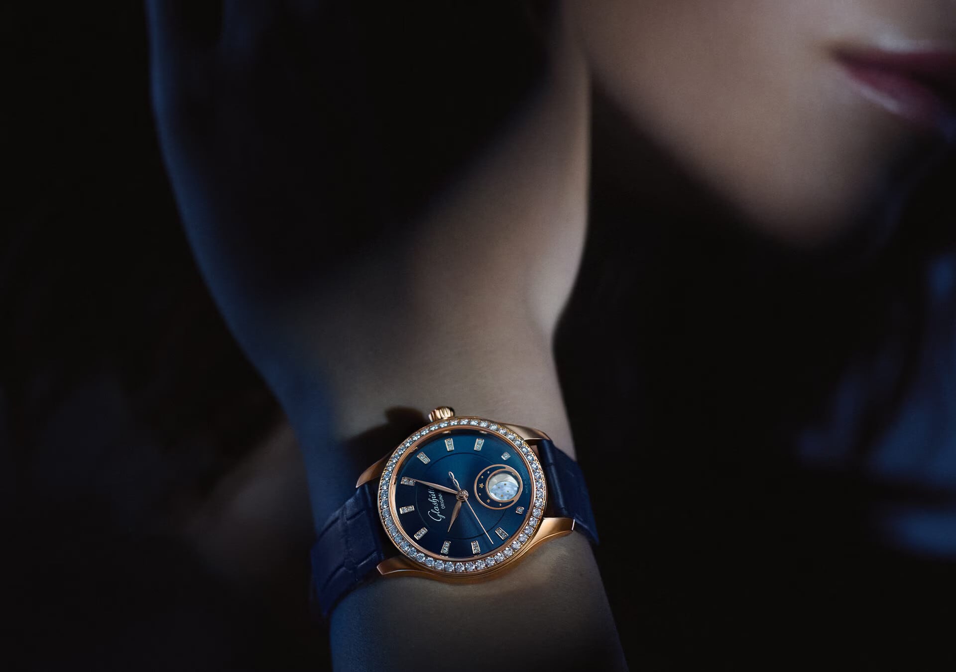 The finishing touch that completes every outfit: This new Serenade Luna is perfect for this role. The handcrafted ladies’ watch in red gold is presented in a 32.5 mm case and impresses with its sophisticated details. A Louisana alligator leather strap in midnight blue elegantly rounds off the mechanical timepiece and goes just as well with jeans as it does with a cashmere jumper.