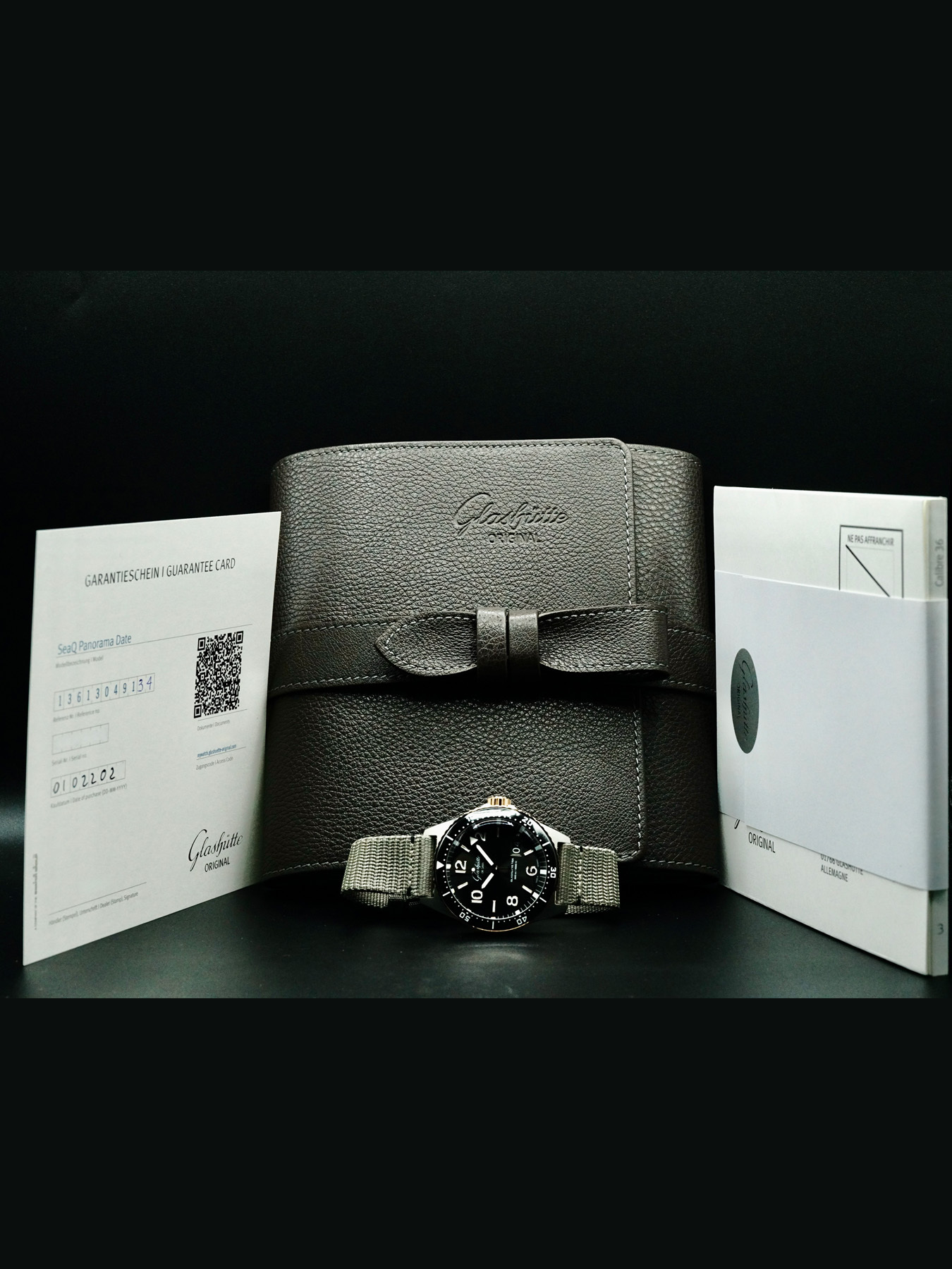 This Glasütte Original SeaQ Panorama Date Two-Tone 1-36-13-04-91-34 is in GREAT condition. This watch includes its original box, instruction manual, and warranty dated 2022. This watch has been fully authenticated and certified by Exquisite Timepieces.