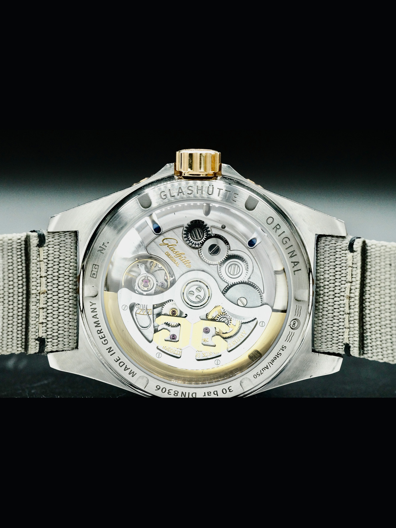 This Glashütte Original 1-36-13-04-91-34 SeaQ Panorama Date Two-Tone is in EXCELLENT condition. This watch includes original box ,papers and warranty card dated 2023. This watch has been fully authenticated and certified by Exquisite Timepieces.
