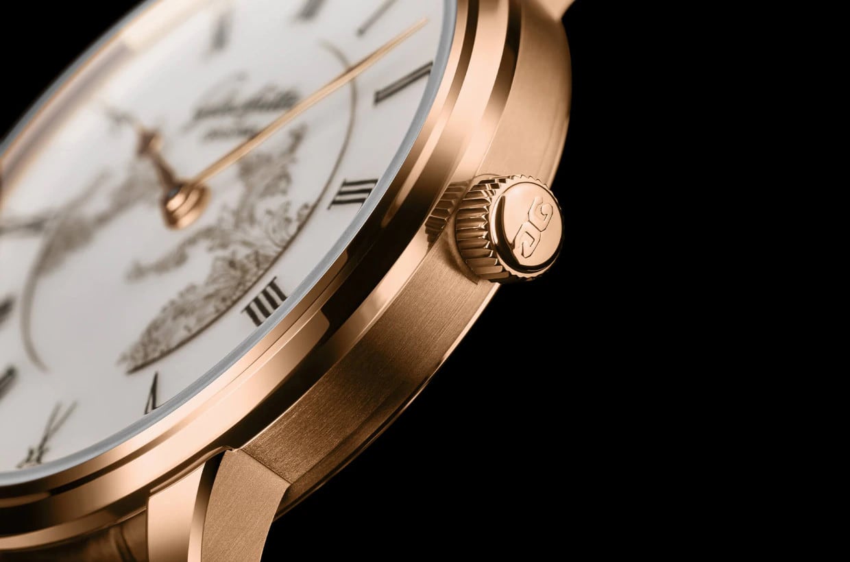This version of the Senator Meissen Edition features a radiant white porcelain dial adorned with the “Mystic Maison” decoration, set within a 40 mm red gold case. The design is completed by a black Louisiana alligator leather strap. Limited to 150 pieces worldwide, this mechanical watch impresses with its clear aesthetics and exceptionally low movement height, enabling a very slim profile.