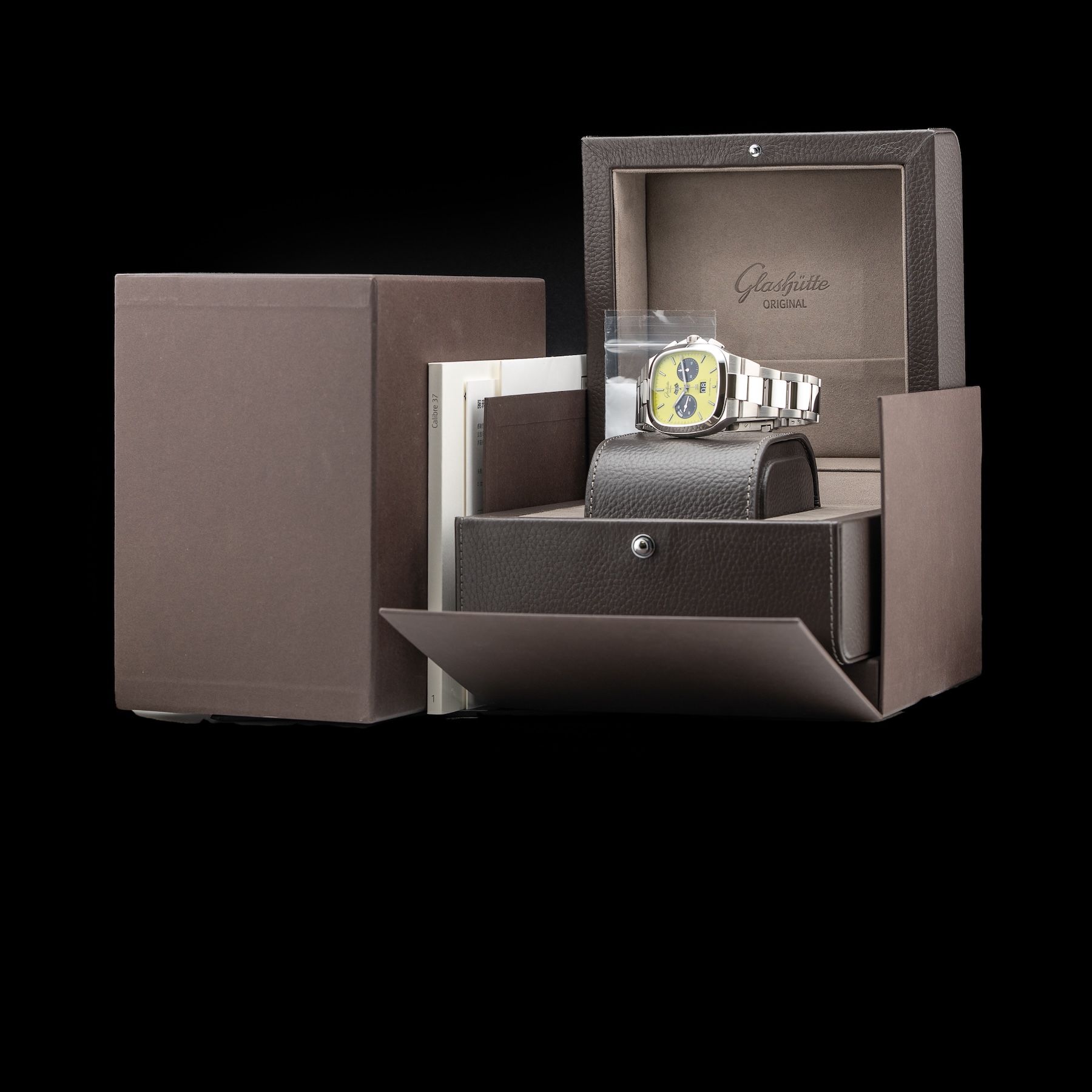 This Glashütte Original Panorama Date 1-37-02-19-02-70 is in GREAT condition, it has box only. This watch has been fully authenticated and certified by Exquisite Timepieces. Please note, the photos shown are of the actual watch you will receive.