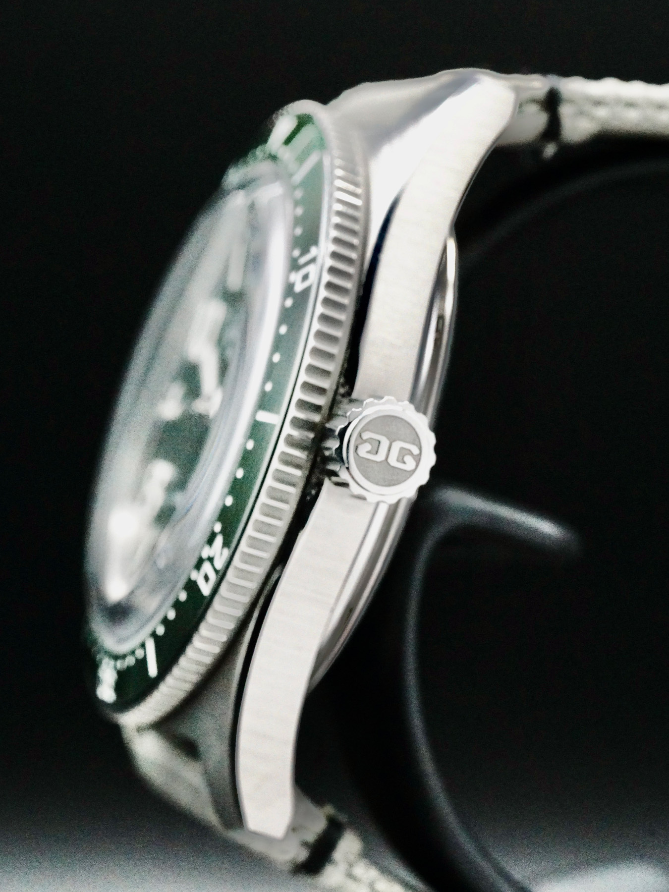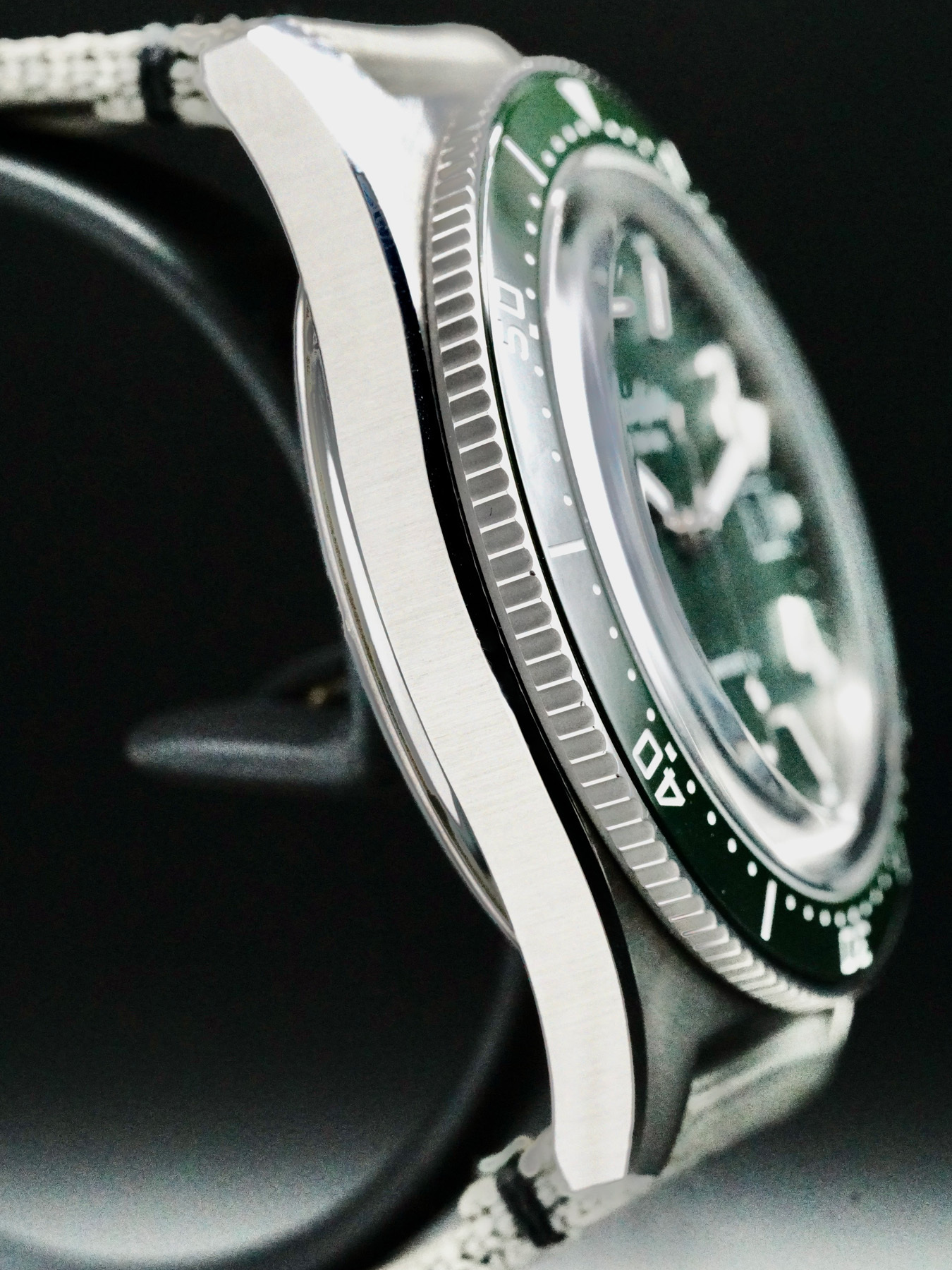 This watch features a 39mm steel case with green dial. Powered by a Mechanical Automatic Movement. Water resistance up to 200 meters.