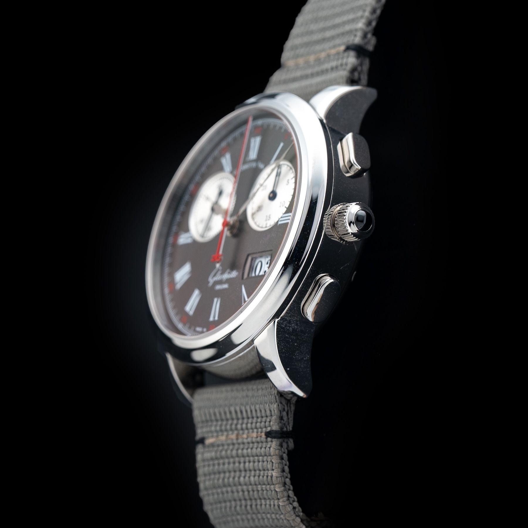 This Glashütte Original 1-99-01-03-03-04 Senator Rattrapante is in GREAT condition. This watch includes its Original Box and Original Papers. It comes with an extra black leather strap. This watch has been fully authenticated and certified by Exquisite Timepieces.