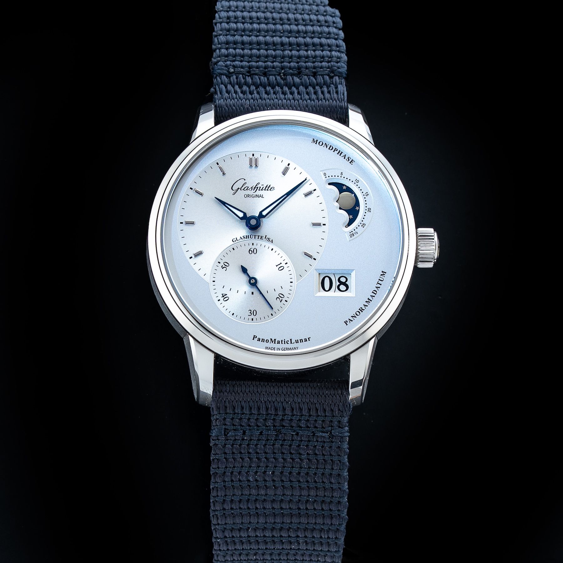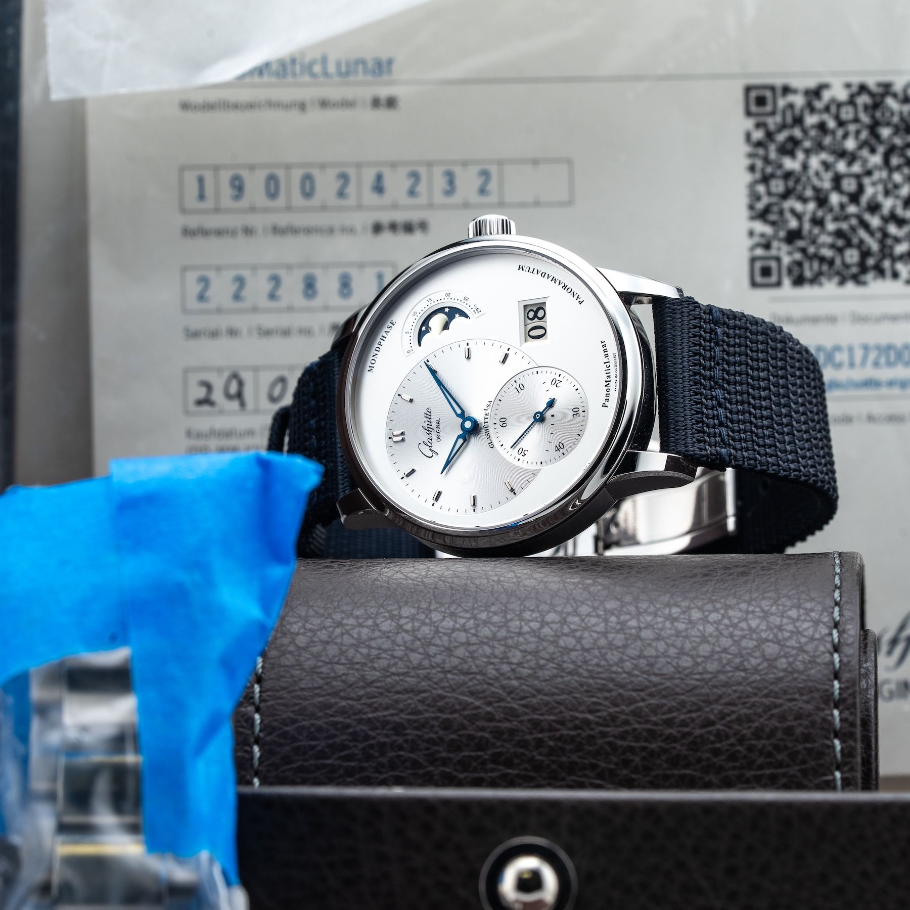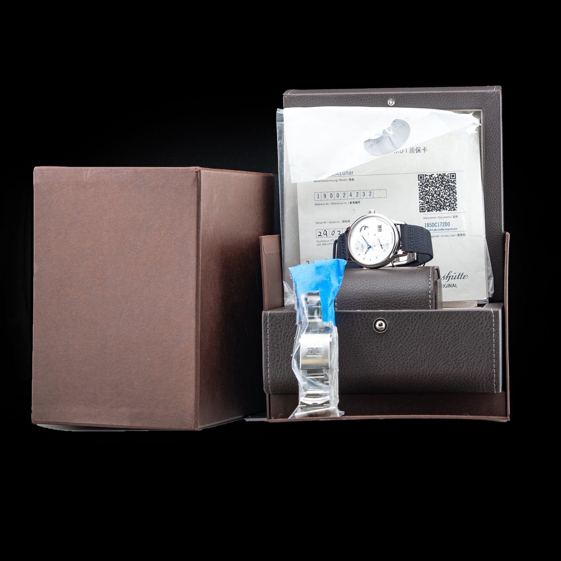 This Glashütte Original PanoMaticLunar 1-90-02-42-32-71 is in GREAT condition. This watch includes its Original Box, Original Papers and Warranty Card Dated 03/29/2024. This watch has been fully authenticated and certified by Exquisite Timepieces. Please note, the photos shown are of the actual watch you will receive.