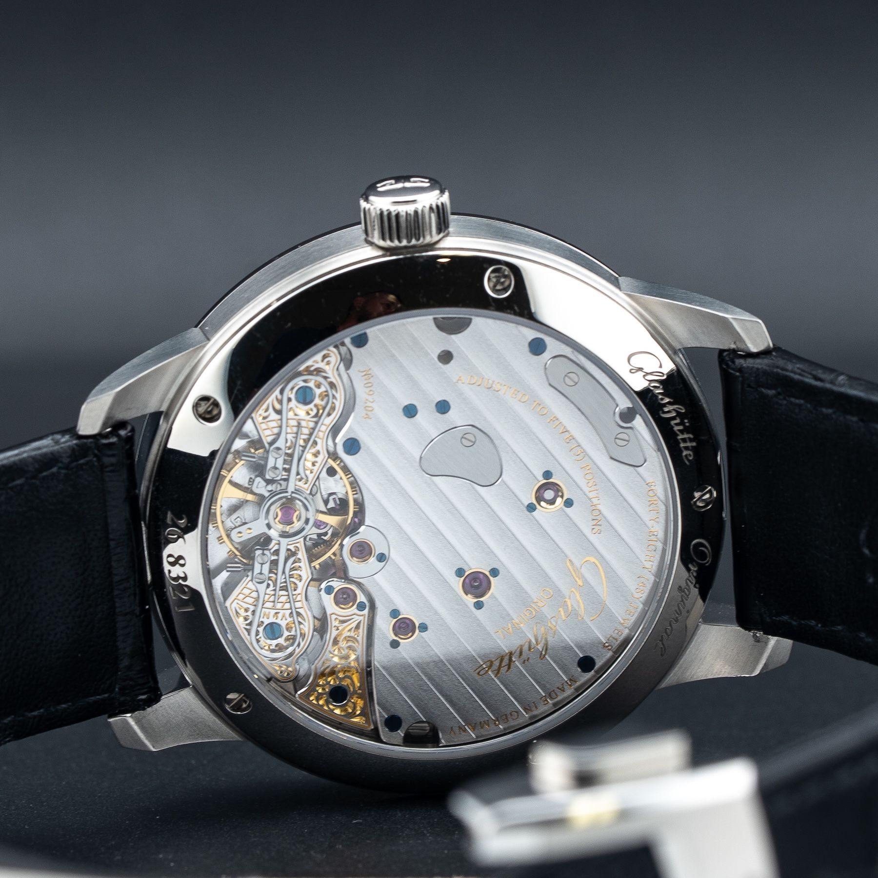 This Glashütte Original Panoreserve 1-65-01-22-12-61 is in GREAT condition. This watch includes its Original Box, Original Papers and Warranty Card Dated 06/10/2025. This watch has been fully authenticated and certified by Exquisite Timepieces.
