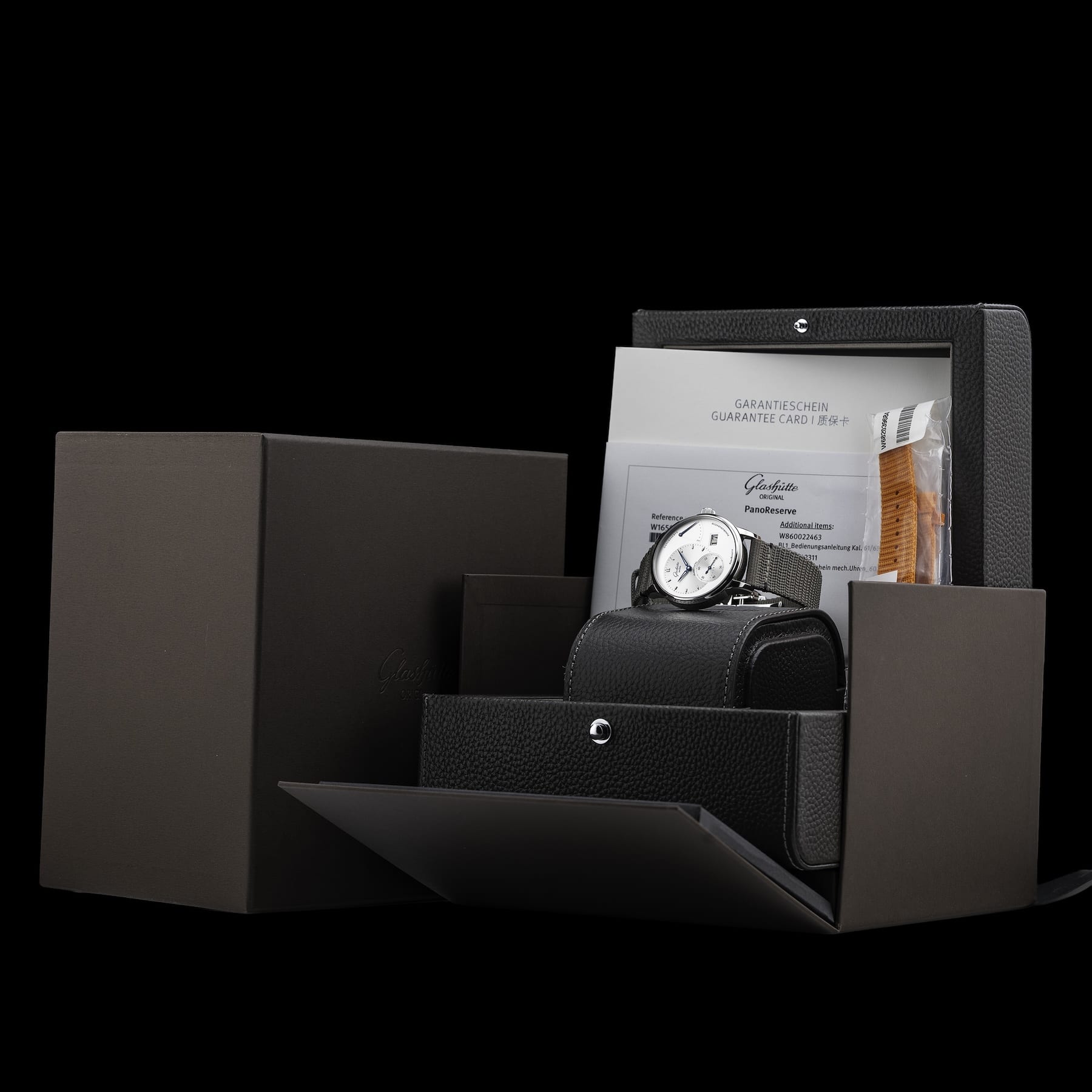 This Glashütte Original Panoreserve 1-65-01-22-12-66 is in GREAT condition. This watch includes its Original Box, Original Papers. This watch has been fully authenticated and certified by Exquisite Timepieces. Please note, the photos shown are of the actual watch you will receive.