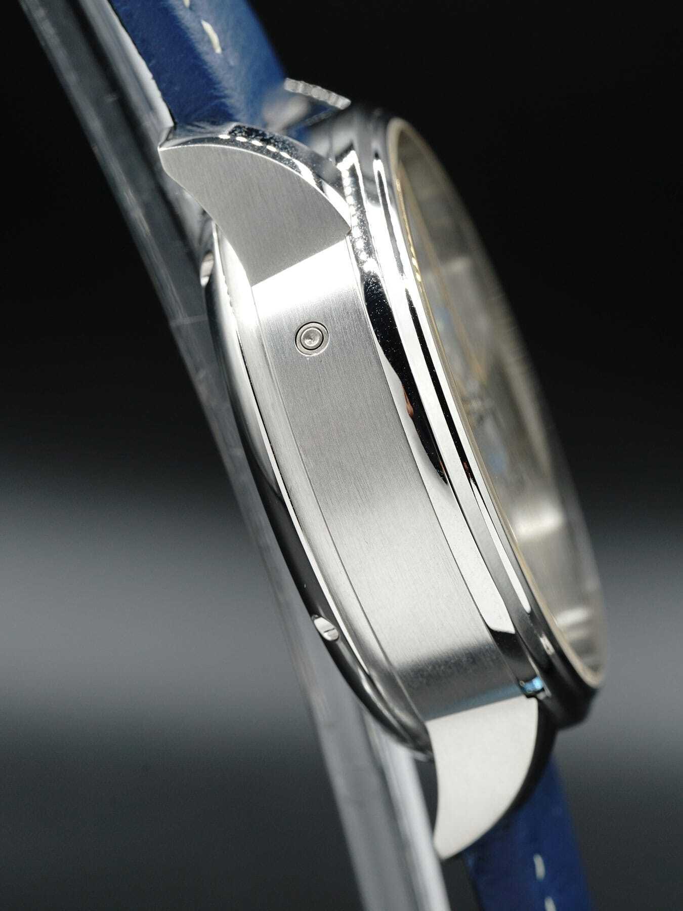 - This timepiece features a 42mm platinum case paired with a high quality leather strap. It showcases a distinctive silver dial and is powered by a precise automatic winding movement. The watch is designed with a water resistance of up to 50m.