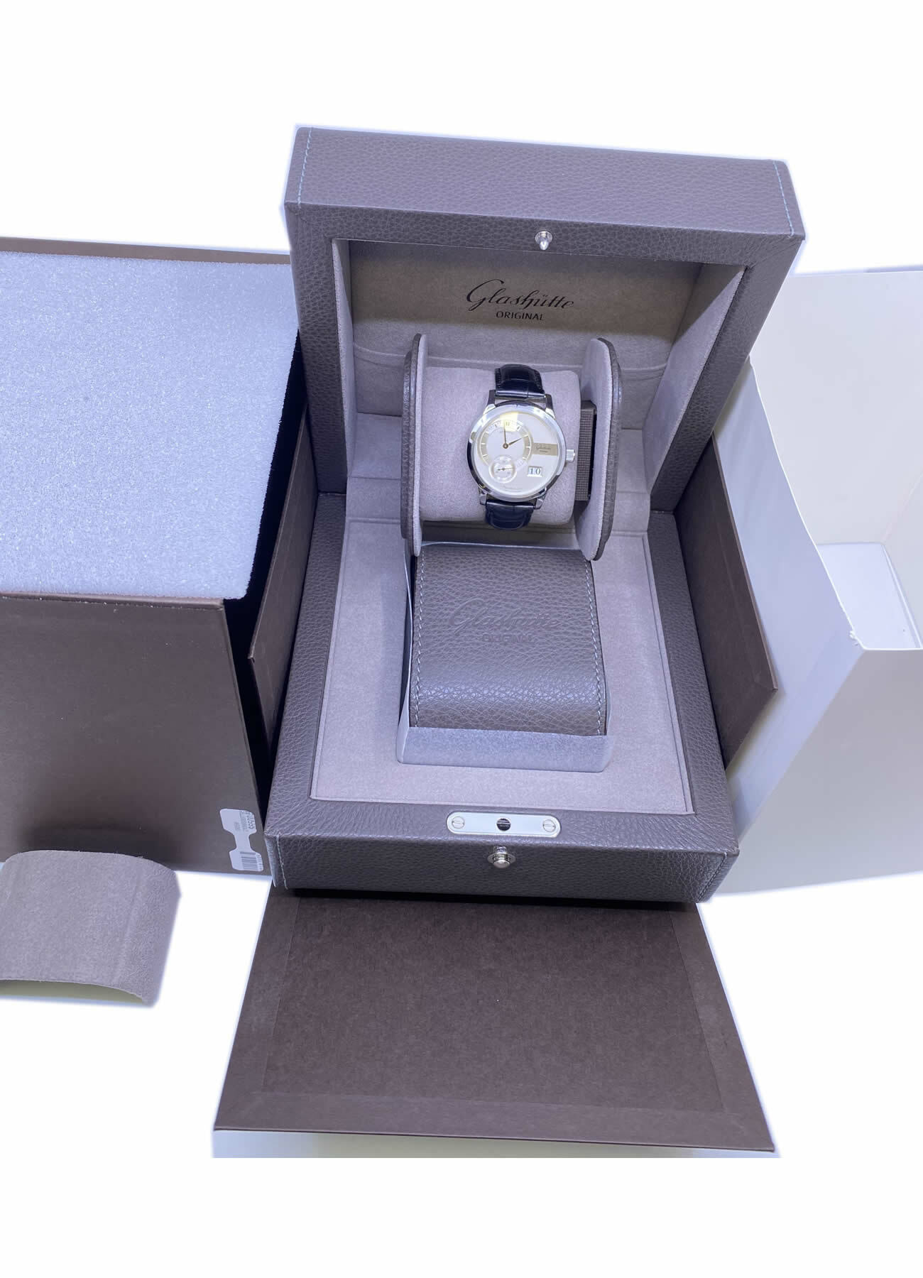 - This timepiece features a 39mm steel case paired with a high quality leather strap. It showcases a distinctive silver dial and is powered by a precise automatic winding movement.
