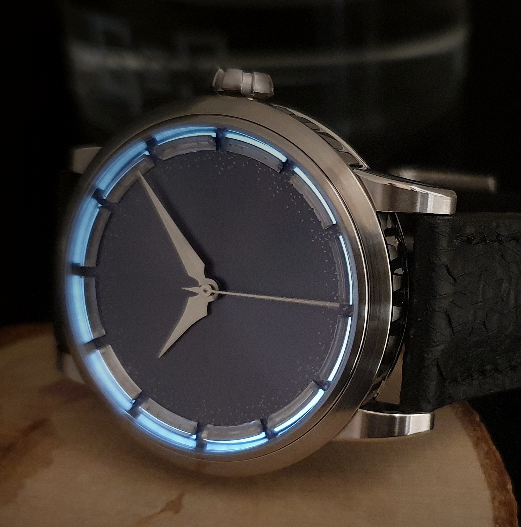 Patrik's desire to capture the enchantment of those frosted windows from his youth led to a unique watch dial. It's a dial that mirrors the randomness of frost and ice patterns, with the enduring charm of an icy frame serving as indexes.