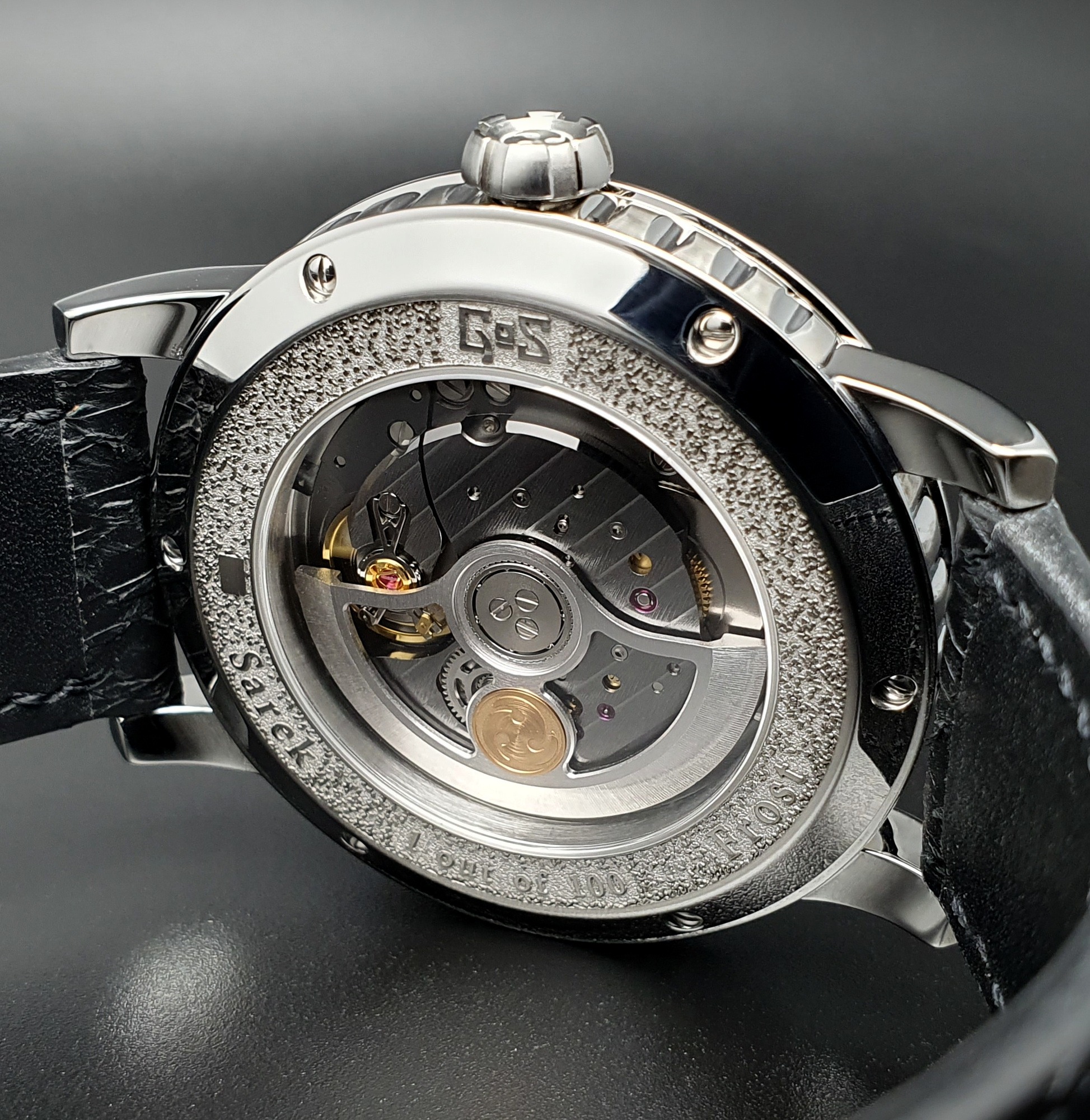 GoS has a long tradition of working with like-minded parties who share the same passion for craftsmanship and creativity. However, finding a dial manufacturer and suppliers willing to tackle the intricate task of crafting the sapphire ice and frost details proved to be a challenging endeavor. It took nearly a year before manufacturing could be started with a total of five collaborating Swiss artisans that were selected for their specialist knowledge. Each artisan plays an instrumental role in the making of the various dial components, with the curved and polished sapphire pieces being the most demanding to manufacture.