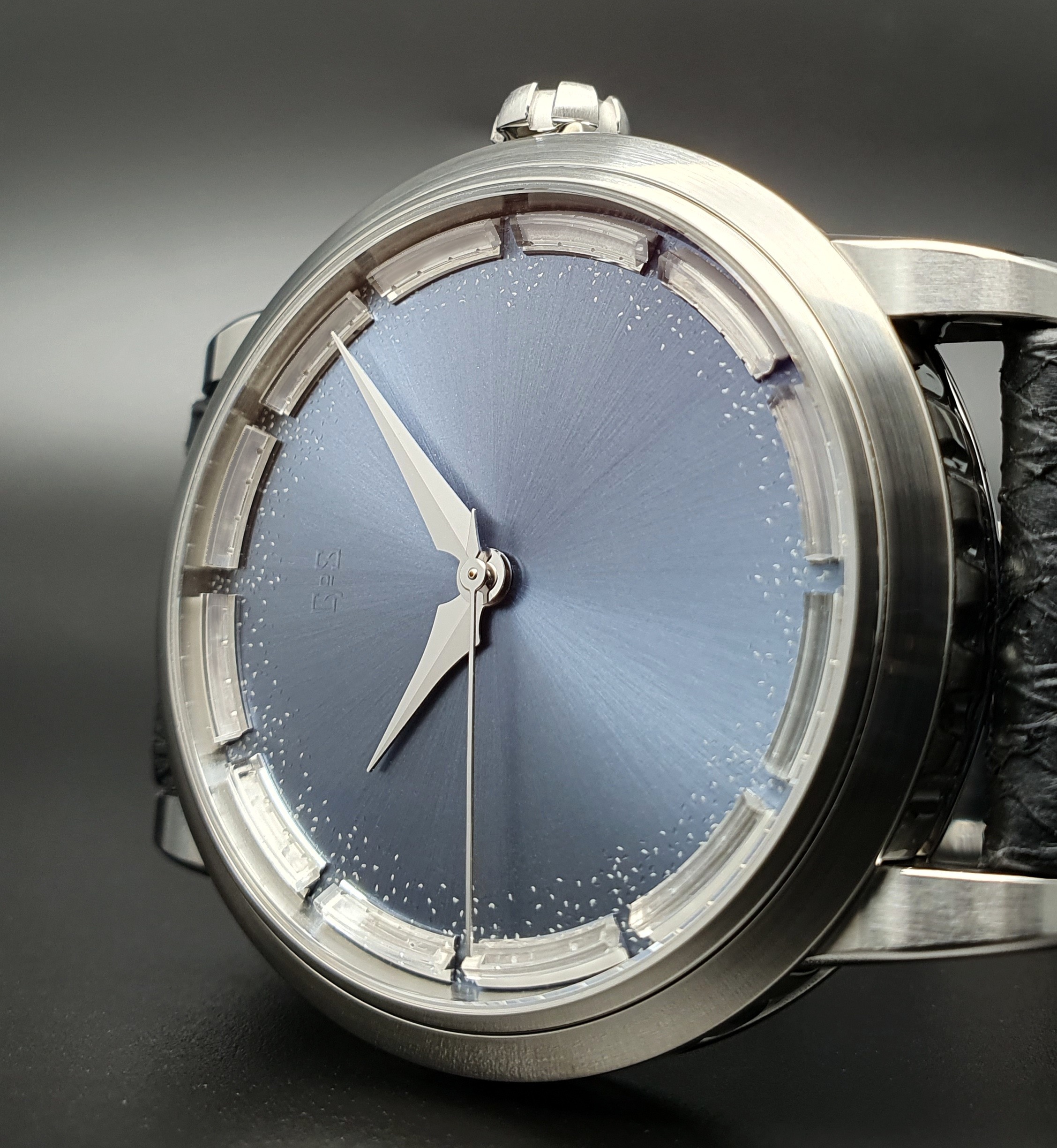 GoS has a long tradition of working with like-minded parties who share the same passion for craftsmanship and creativity. However, finding a dial manufacturer and suppliers willing to tackle the intricate task of crafting the sapphire ice and frost details proved to be a challenging endeavor. It took nearly a year before manufacturing could be started with a total of five collaborating Swiss artisans that were selected for their specialist knowledge. Each artisan plays an instrumental role in the making of the various dial components, with the curved and polished sapphire pieces being the most demanding to manufacture.