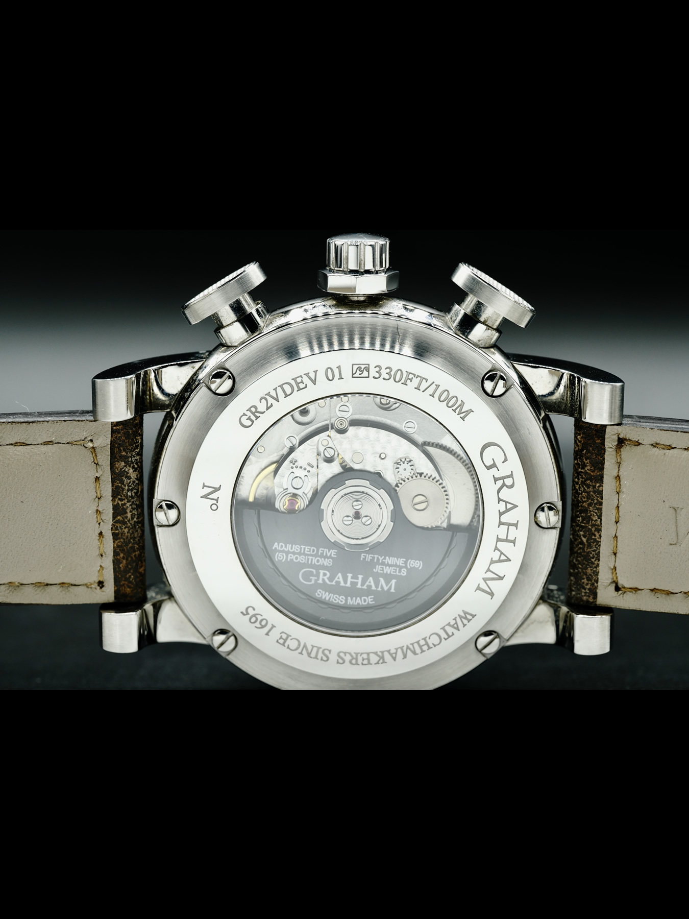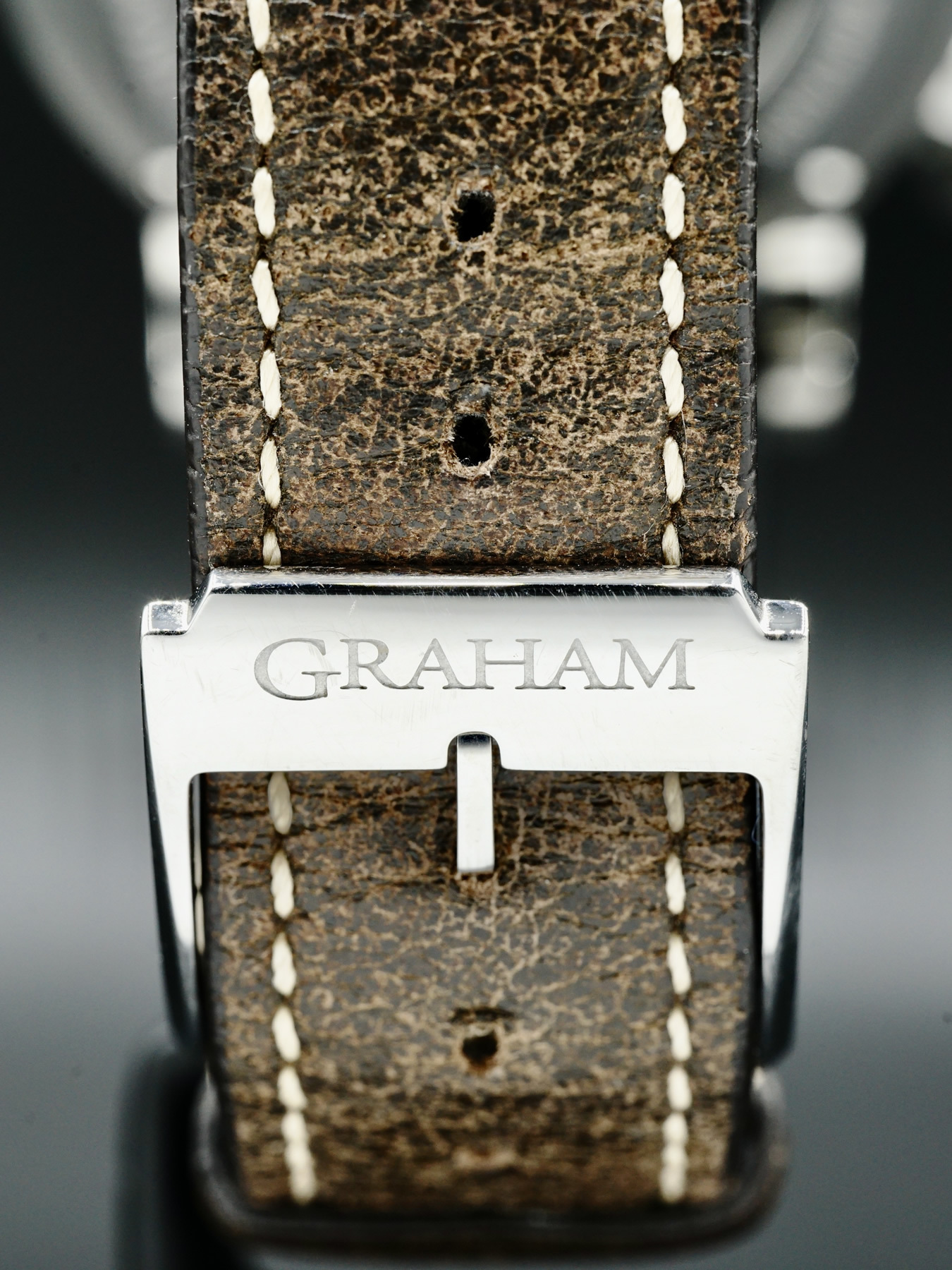 Automatic movement powered by Graham Calibre G1702 for a power reserve of approximately 40 hours. Water resistance up to 100 meters.