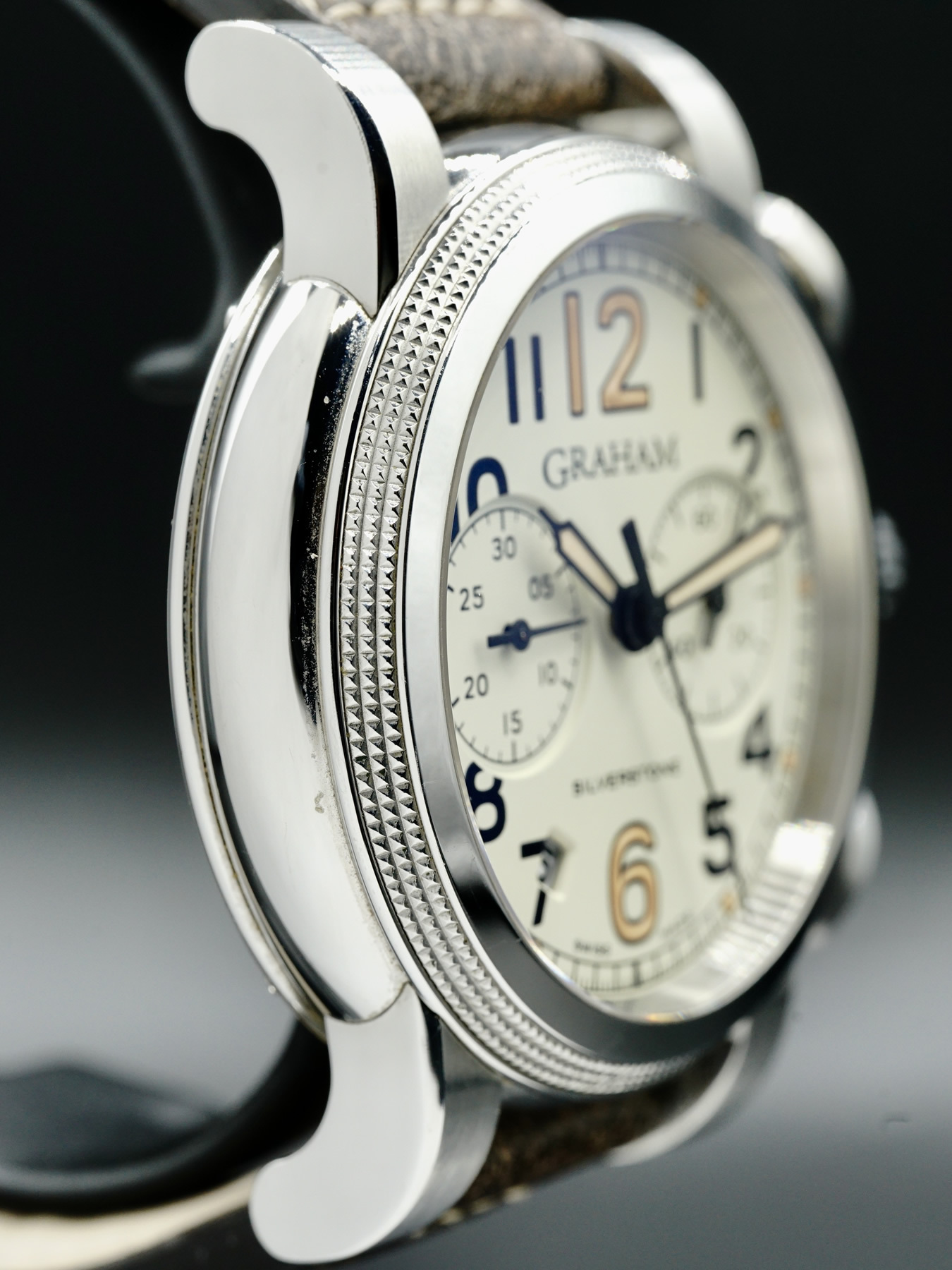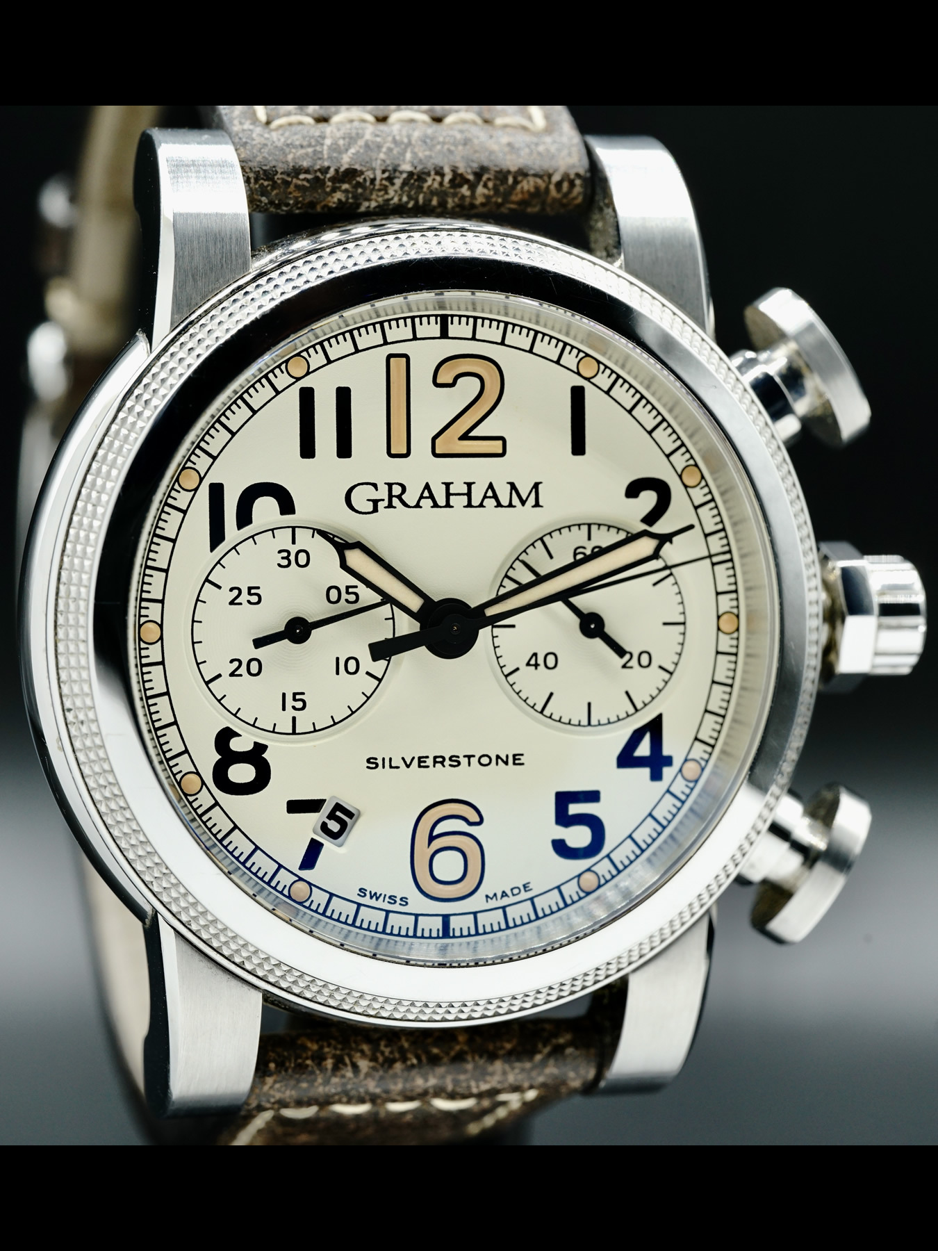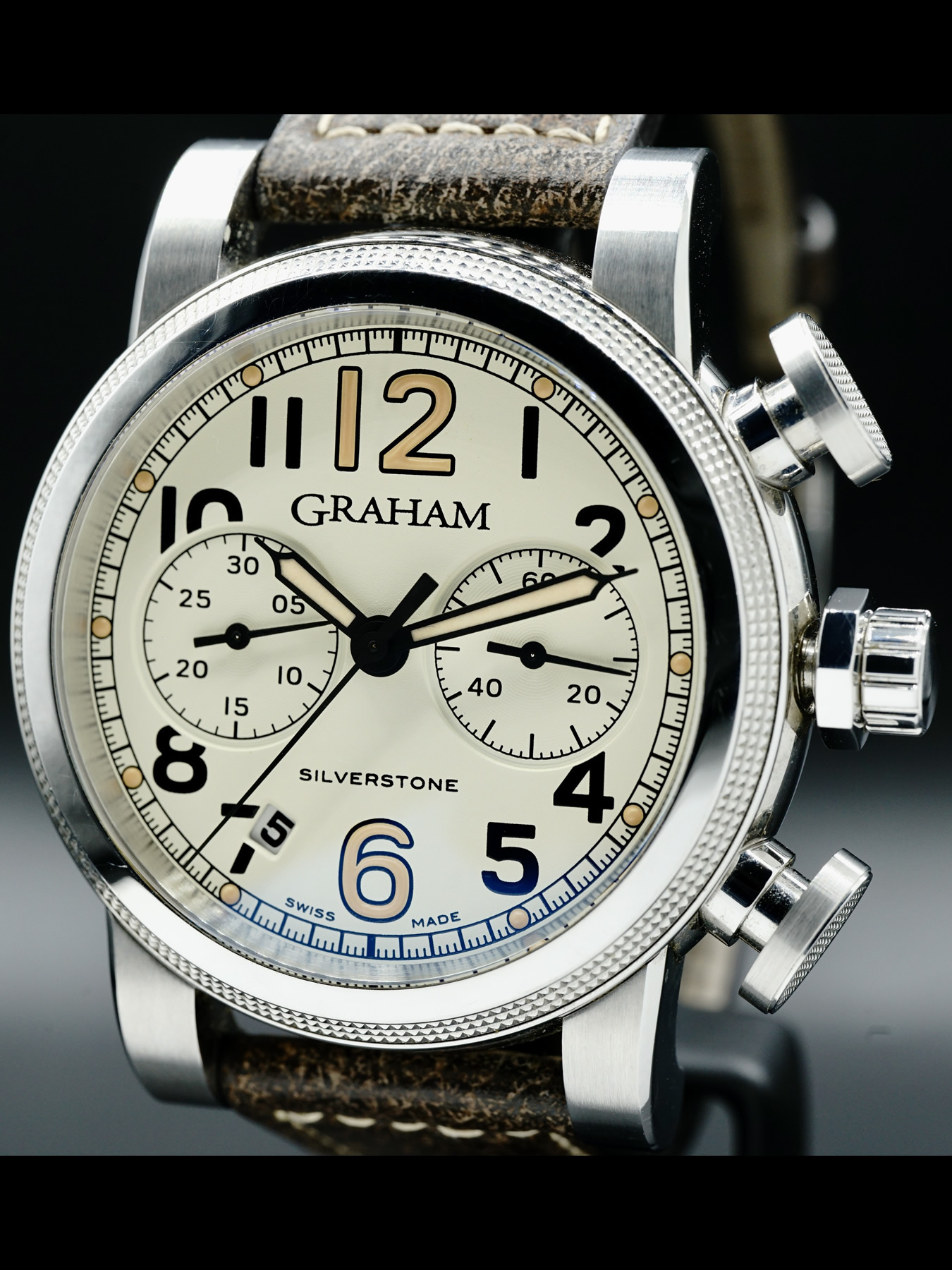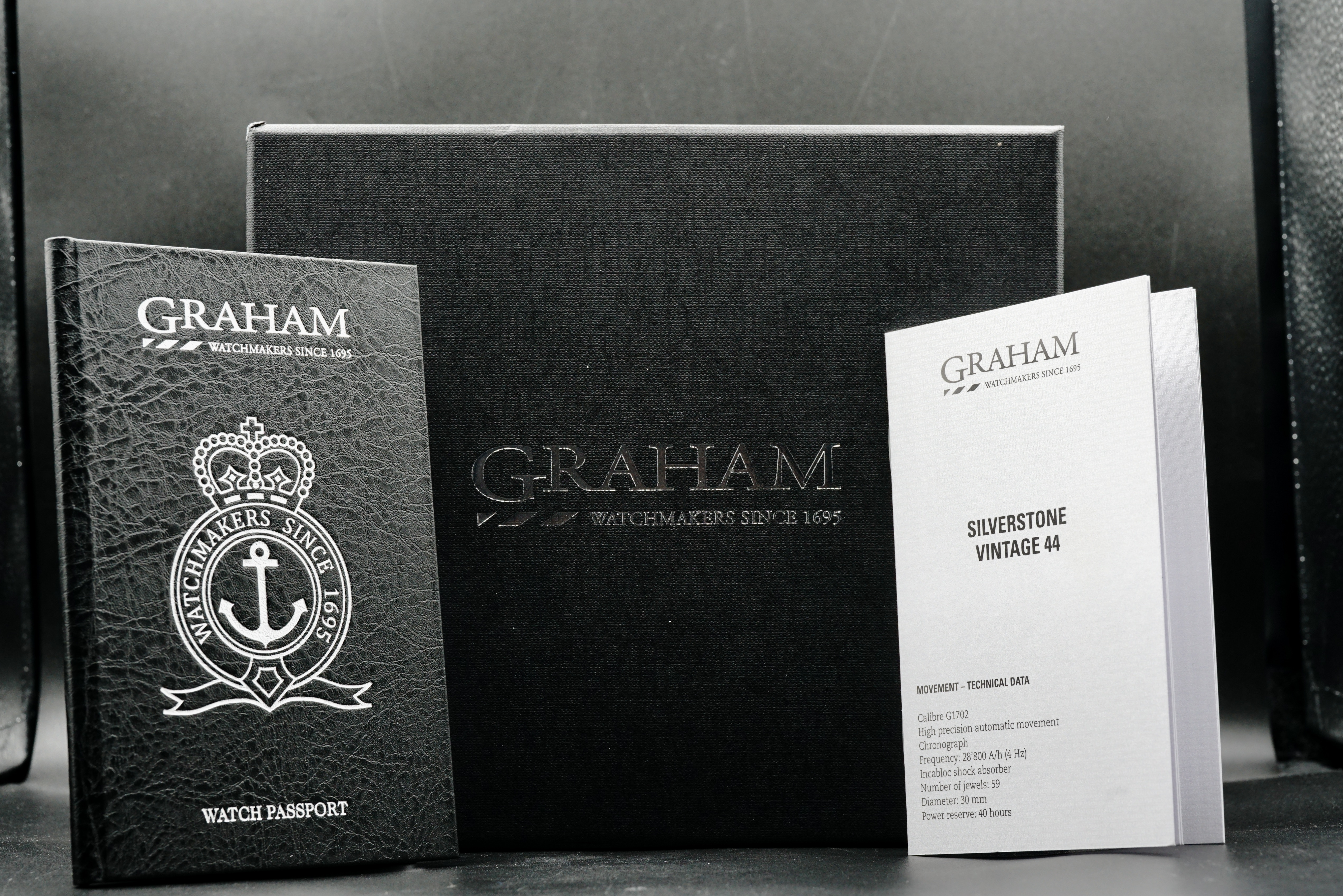 This Graham Silverstone Vintage 44 2SABS.W01A is in GREAT condition. This watch includes its original box, instruction manual, and certificate of origin.