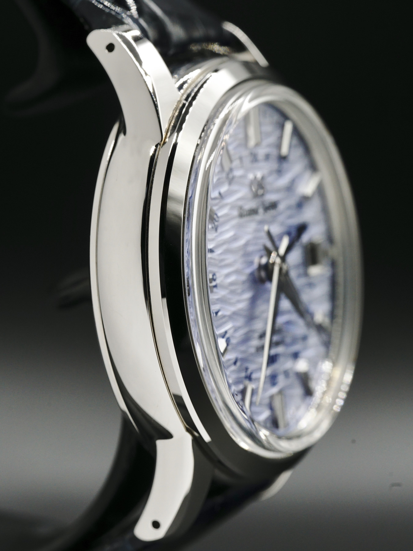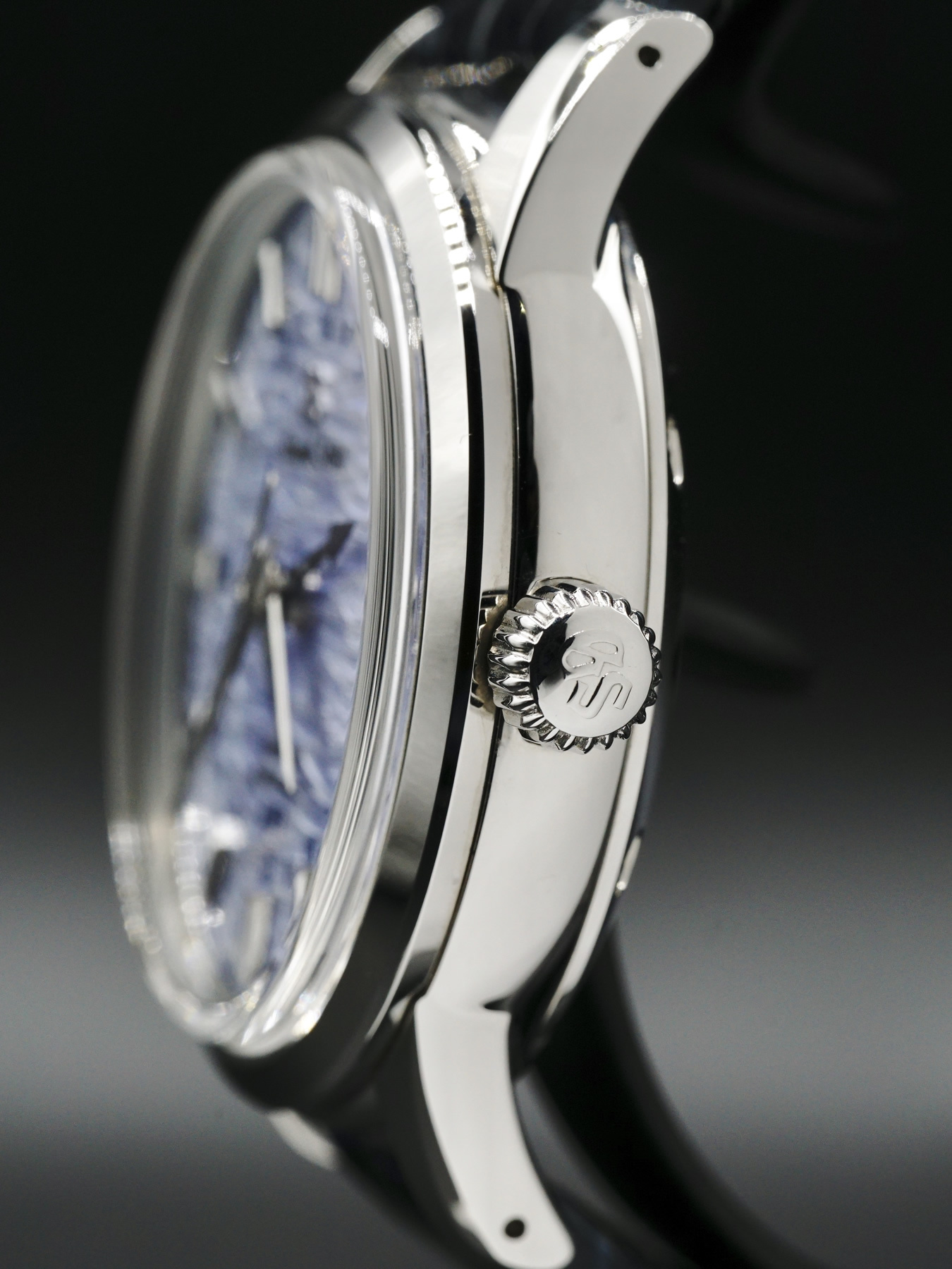 Shōsho. High summer approaches and, at last, the rainy season ends. The warm wind creates delicate ripples in the many thousands of lakes and ponds that shimmer in the early summer sun throughout Japan. The wave pattern dial brings Shōsho to life as the long, tapered seconds hand, driven by the high beat caliber, moves powerfully across the dial.