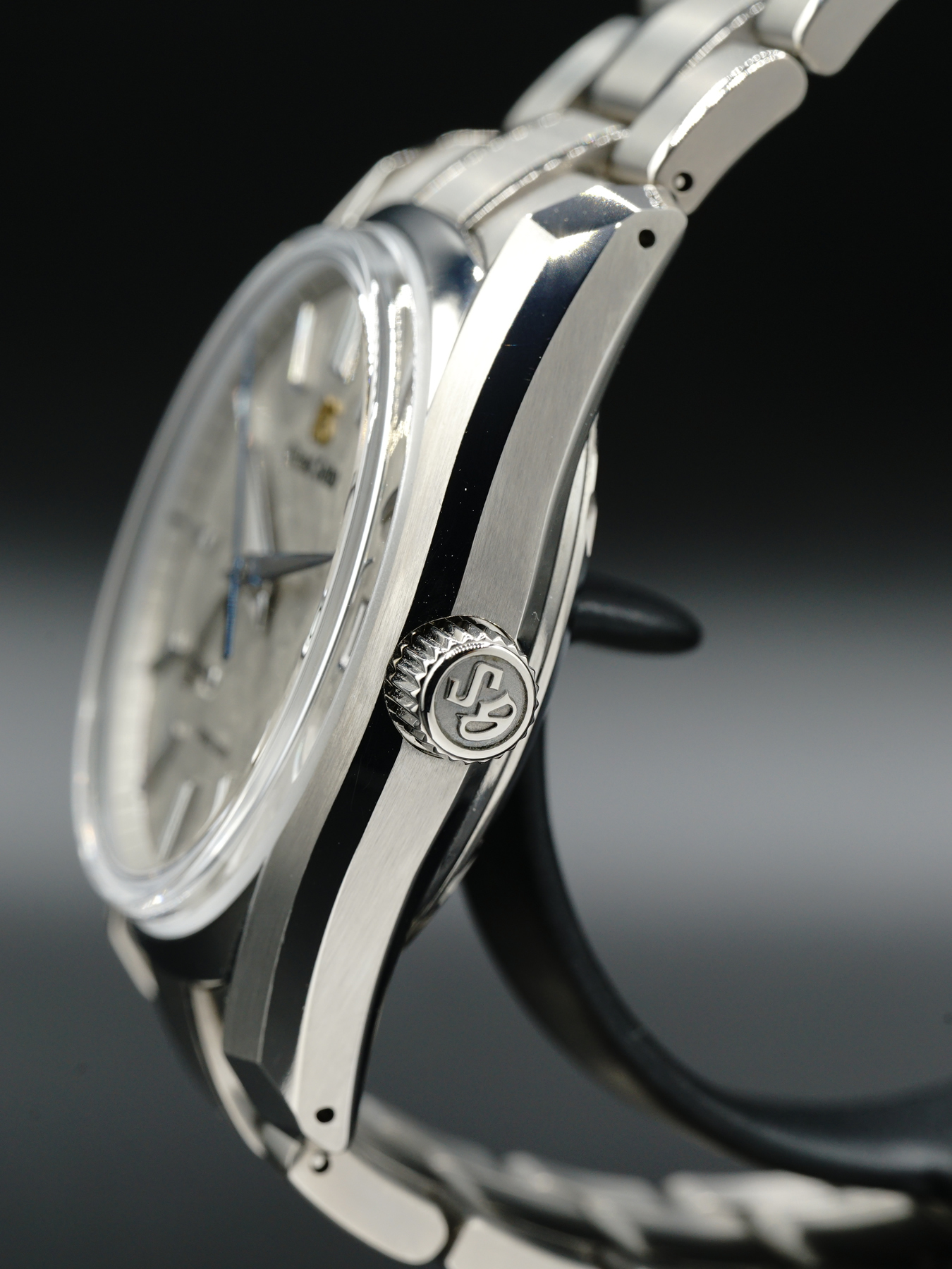 This Grand Seiko is in EXCELLENT condition. The Grand Seiko SBGA415 is one of the best watches of the brand with an elegant design and the precise and accurate functions. Grand Seiko SBGA415 has a stainless steel case with a screw-down crown. Its diameter measures 40mm and the thickness is also impressive, at 13.1mm. The bezel is practically obsolete. The watch's superb sapphire crystal is elevated with the polished finish. The SBGA415 is waterproof to 100 meters. The dial has a beautiful variation of whites and grays, and it has a small window at 3 o'clock that shows the date. This watch includes its original box, papers, and limited warranty dated for January 2021.