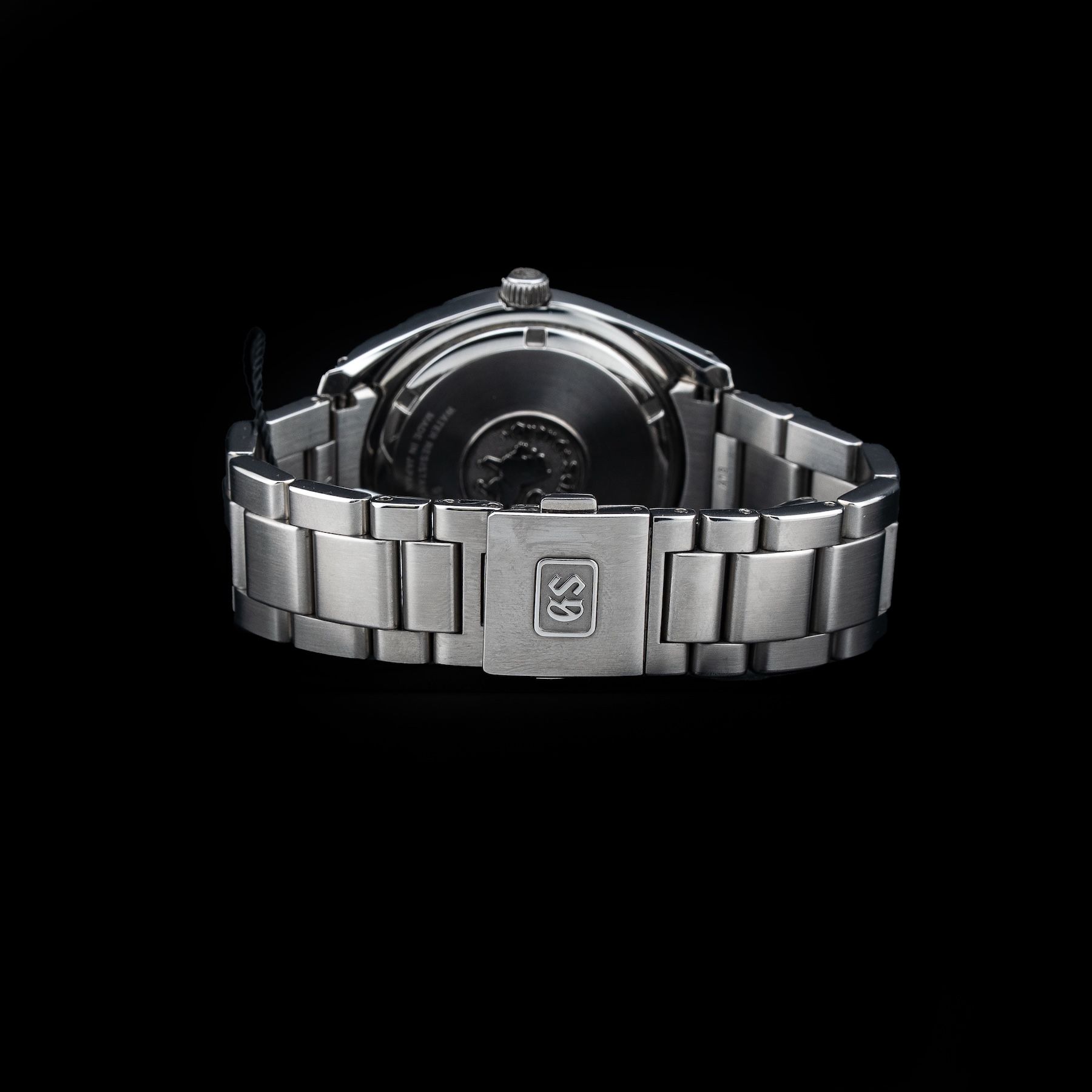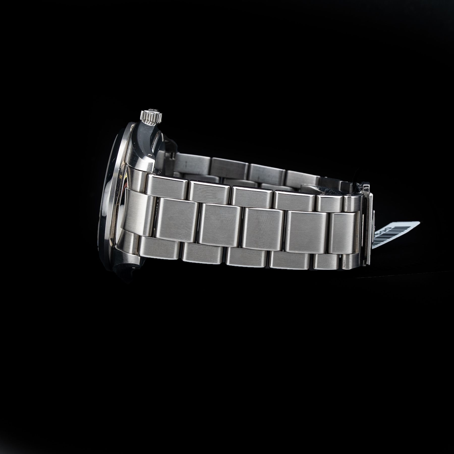 This watch features a 40mm stainless steel case on stainless steel bracelet. This watch also sports a black dial. Powered by a quartz movement. Water resistance up to 100 meters.