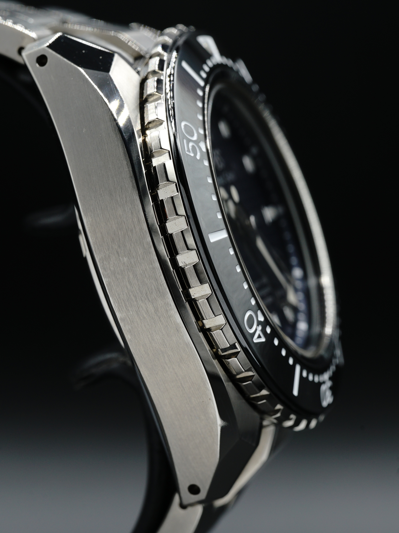 This professional diver's model features the Caliber 9S85 high-precision 10-beat mechanical movement in a case that can withstand pressures encountered in saturation diving, down to a depth of 600 meters.