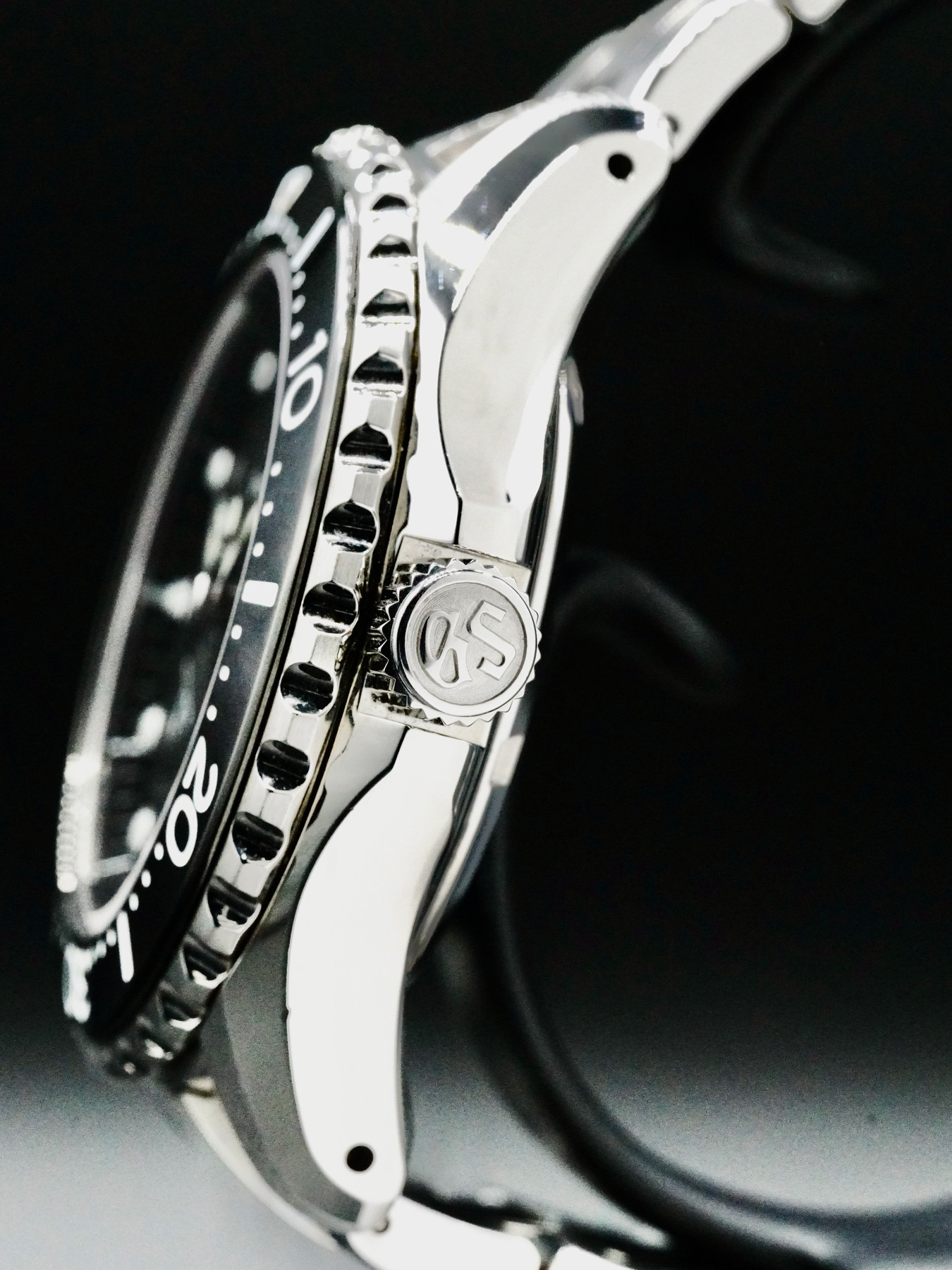 This watch features a 44mm steel case. This watch also sports a black dial. Powered by a Spring Drive Movement. Water resistance up to 200 meters.