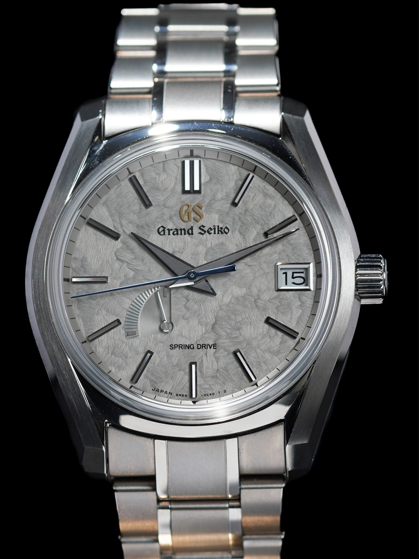 This watch features a 40mm titanium case on titanium bracelet. This watch also sports a silver dial. Powered by a spring drive caliber 9R65 automatic movement. Water resistance up to 100 meters.