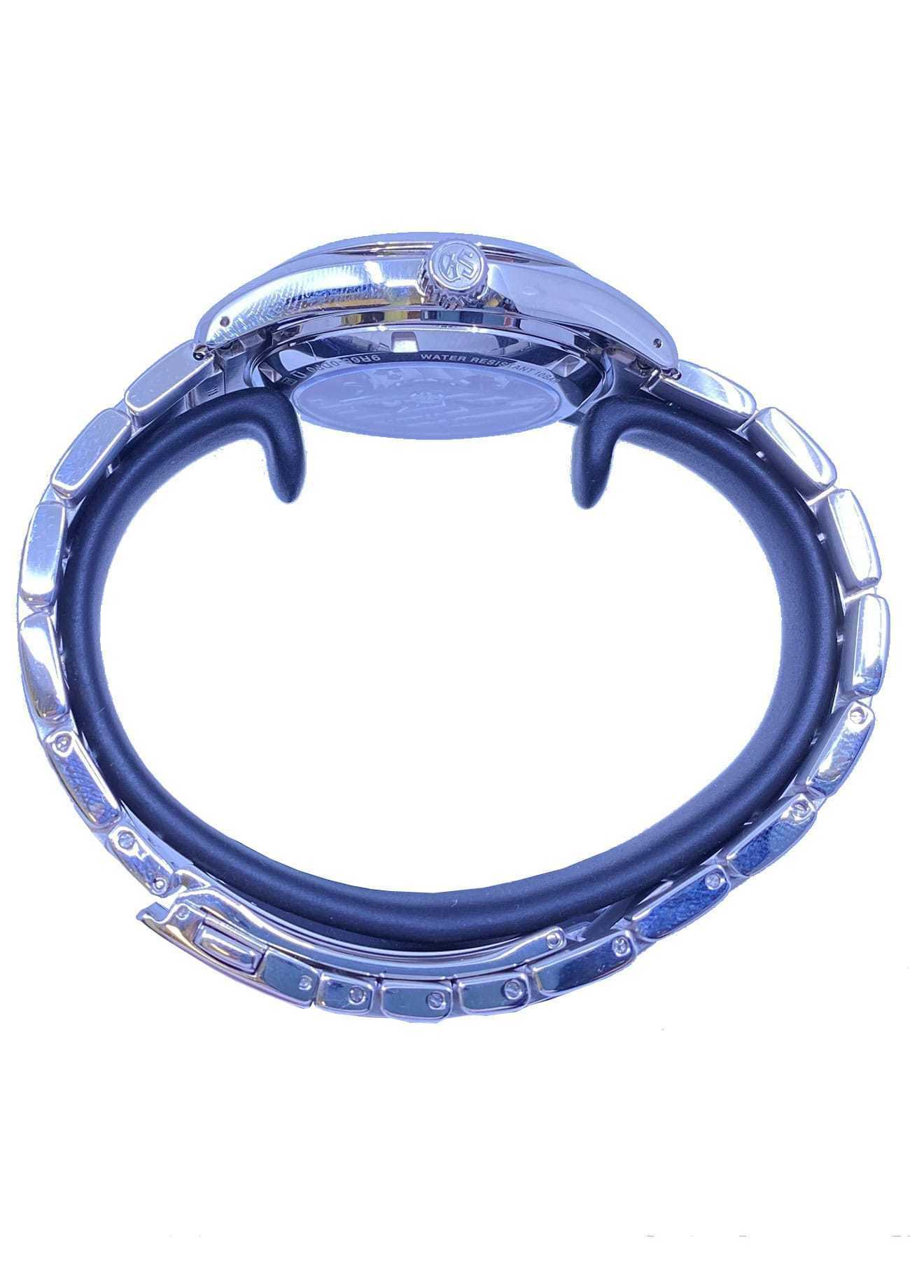 - This timepiece features a 39mm steel case paired with a high quality steel bracelet. It showcases a distinctive gray dial and is powered by a precise automatic winding movement. The watch is designed with a water resistance of up to 100m.
