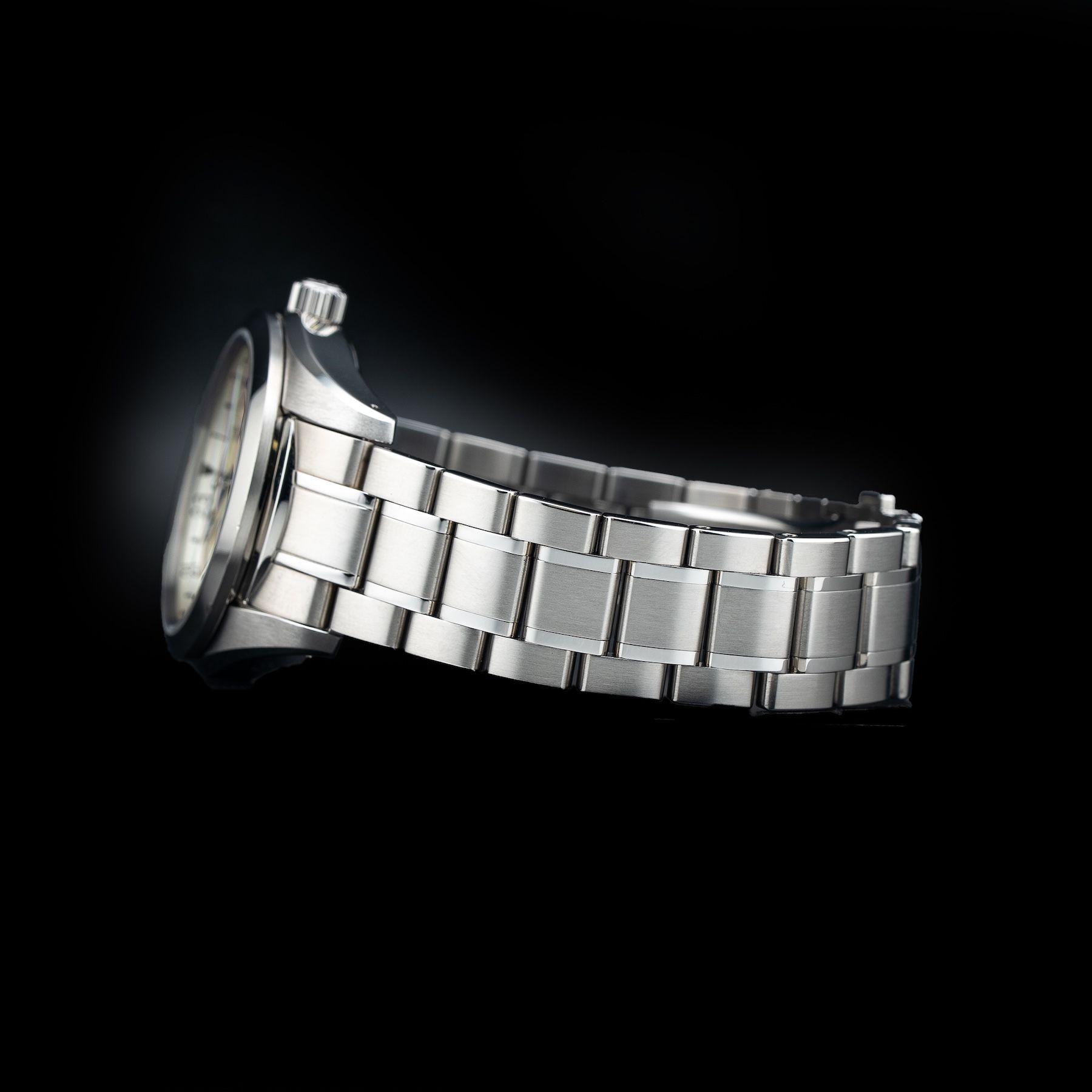 This watch features a 41mm stainless steel case on stainless steel bracelet. This watch also sports a champagne dial. Powered by a spring drive movement. Water resistance up to 100 meters.