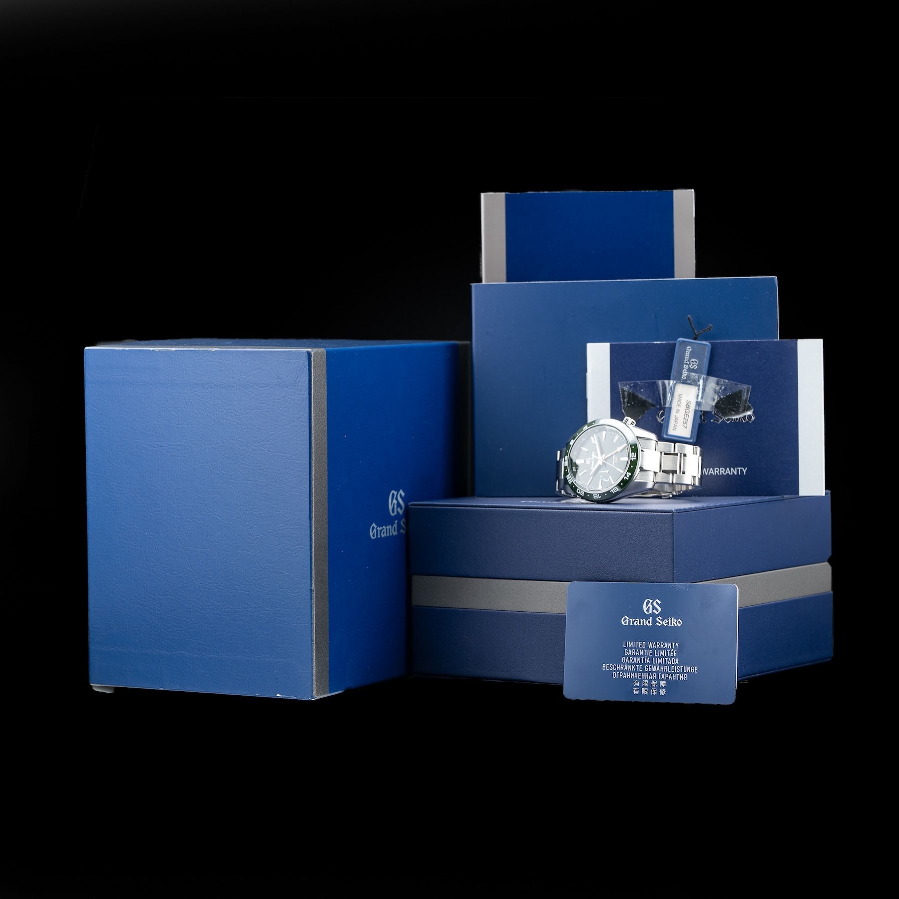 This Grand Seiko SBGE257 Sport GMT Spring Drive Green Dial is in GREAT condition. This watch includes, original boxes, original papers and warranty card dated 08/17/2024. Extra bracelet link. This watch has been fully authenticated and certified by Exquisite Timepieces. Please note, the photos shown are of the actual watch you will receive.