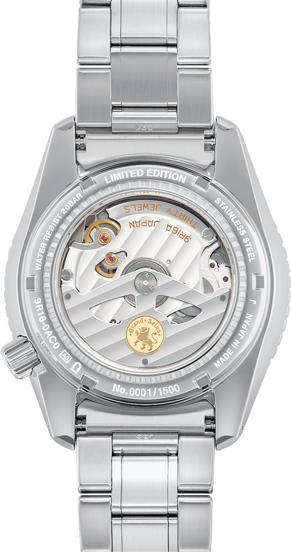 It is powered by a specially adjusted movement, Caliber 9R16, which offers an enhanced precision rate of ±10 seconds per month. The Grand Seiko lion emblem is featured in 18K yellow gold on the oscillating weight. The dial has the rugged texture of the snow surface that can be seen in the high mountains that surround the Shinshu Watch Studio in central Japan in late winter and early spring. When the daytime temperatures start to rise and the annual thaw begins, the wind carves a unique pattern as it whips across the melting snow drifts. This ephemeral and beautiful effect is captured on the dial.