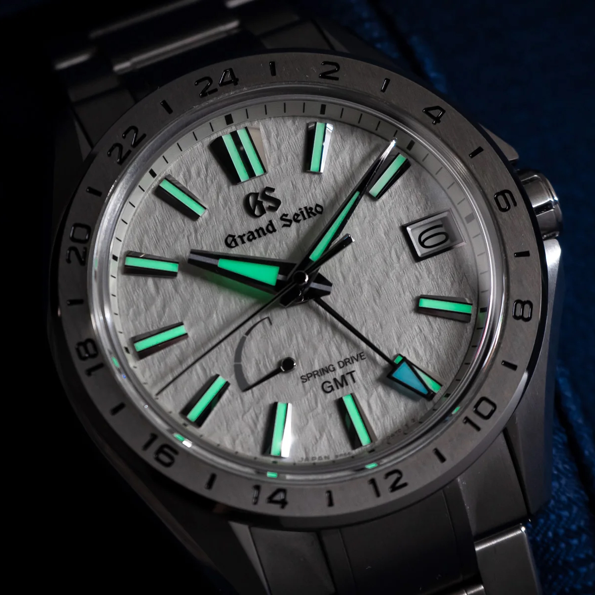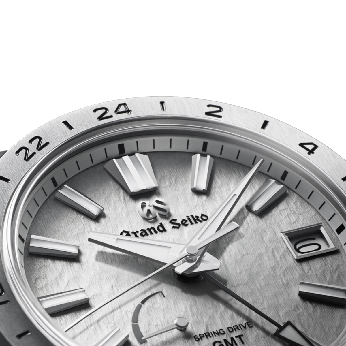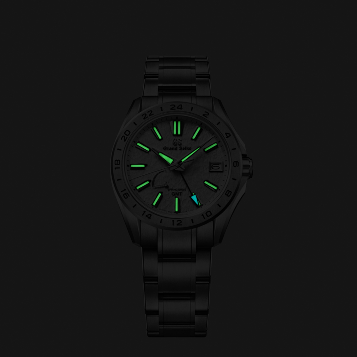 This “go-anywhere” Spring Drive GMT watch looks as good at the office as it does at home but has a dial that is inspired by the landscape where it was created. It has a delicately textured surface pattern that echoes the morning mist that envelops the mountains of Nagano, the home of Spring Drive, in winter.