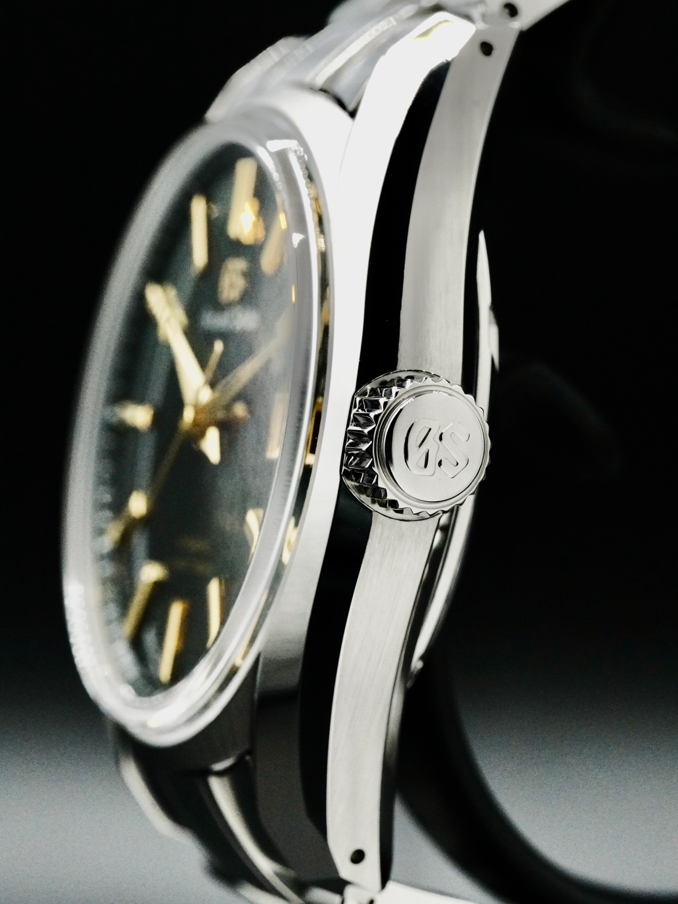 The Grand Seiko SBGH271 carries with it a 9S85 caliber movement masterly crafted in the Shizukuishi watch studio in the Iwate Prefecture. This modern movement makes use of innovations to the mainspring, hairspring, and escapement which improves precision and gives pure power from its mechanical hi-beat 36,000 (10 beats per second). First, the hairspring uses new materials that enhance fundamental performance. These new materials, honed from 50 years of Grand Seiko experience, bring about a new generation of Sopron alloys called Sopron 610 which took about five years to develop. This material had the ability to take on twice the impact, and three times higher magnetic resistance. Second, the mainspring increases torque for high-speed oscillation and longer power reserve utilizing a Sopron 530 alloy that took six years of development. Delivering six percent more power than its predecessors along with with keeping the same corrosion resistance, five more hours of power reserve, and durability. The 9S85 caliber brings greater accuracy but also brings a greater challenge as well that few watchmakers choose to take on. The Grand Seiko SBGH271 meets the challenge of the 9S85 caliber head-on with an accuracy of +5 to –3 seconds per day when static and +8 to –1 seconds per day with normal usage. While also maintaining 55 hours of power reserve and the durability the Grand Seiko brand is known for despite the faster rotational speed having a tendency to wear on a watch’s ability to support longevity. Grand Seiko spent many years perfecting their craft of the 9S85 caliber movement, and the SBGH271 showcases the effort perfectly. This Automatic with a manual winding capacity watch has a water resistance of up to 10 bar or 100 meters, magnetic resistance equipped, date display, thirty-seven jewels, and a stop-seconds hand function. The SBGH271 has a case size of 44mm in diameter by 12.9mm in thickness and comes with: a screw case back that is see-through and carries the lion emblem on it, a screw-down crown, and a threefold clasp with push-button release. Along with every Grand Seiko watch the case material for the SBGH271 continues this tradition of excellence with nothing but the best: Sleek stainless steel with dual-curved sapphire glass that has an anti-reflective coating on the inner surface.