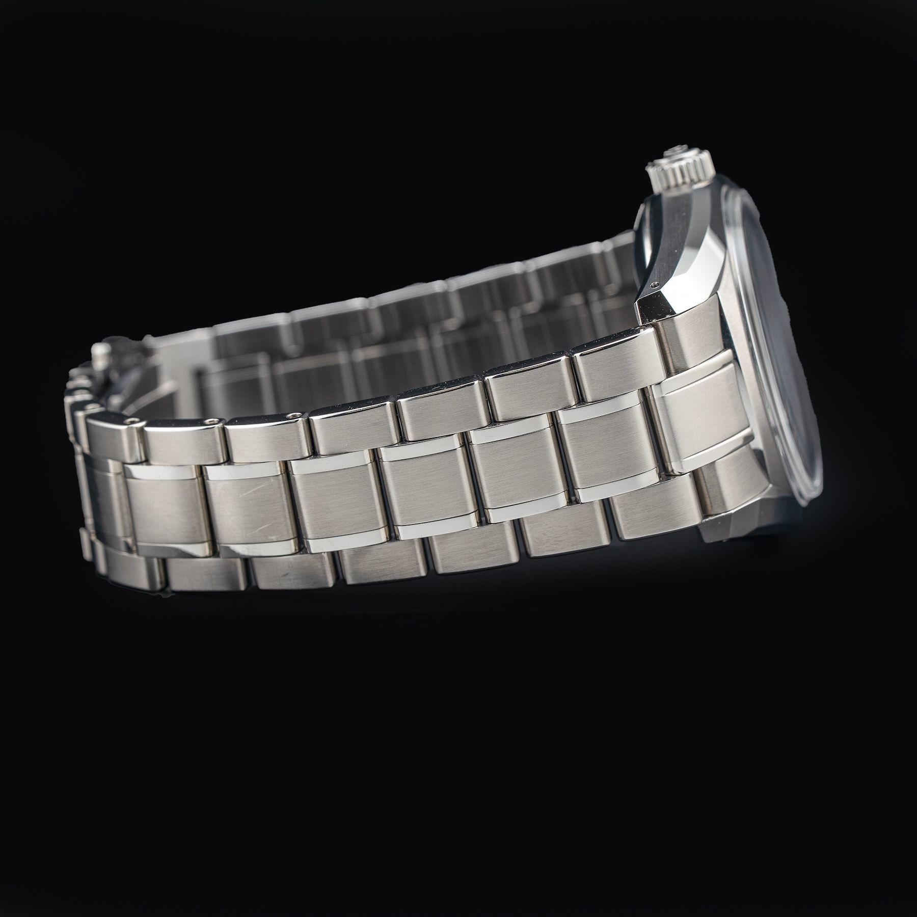 This watch features a 40mm stainless steel case on stainless steel bracelet. This watch also sports a grey dial. Powered by an automatic with manual winding movement. Water resistance up to 100 meters.