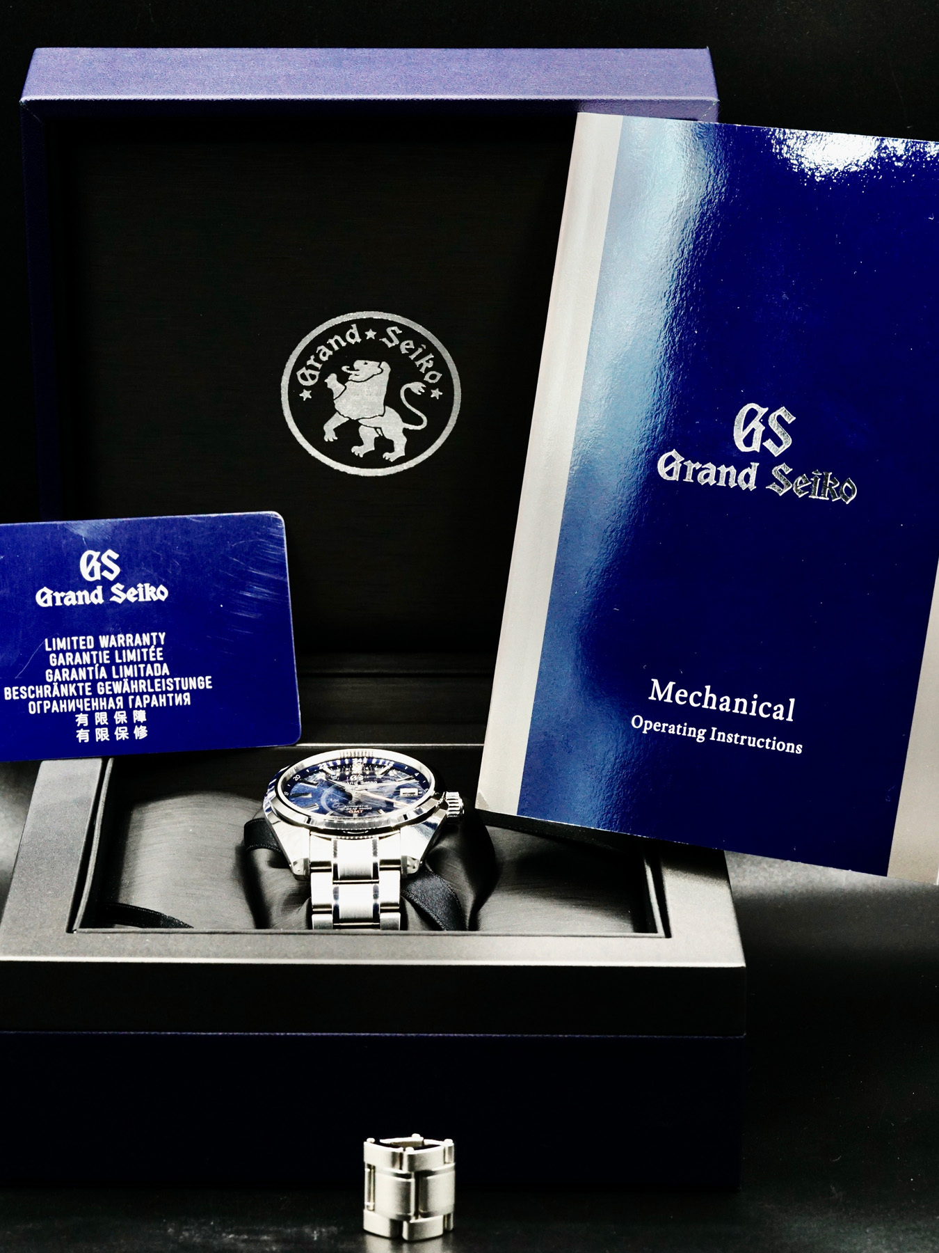 This Grand Seiko SBGJ235 Hi Beat 36000 GMT Boutique Edition is in EXCELLENT condition. It has box and papers.