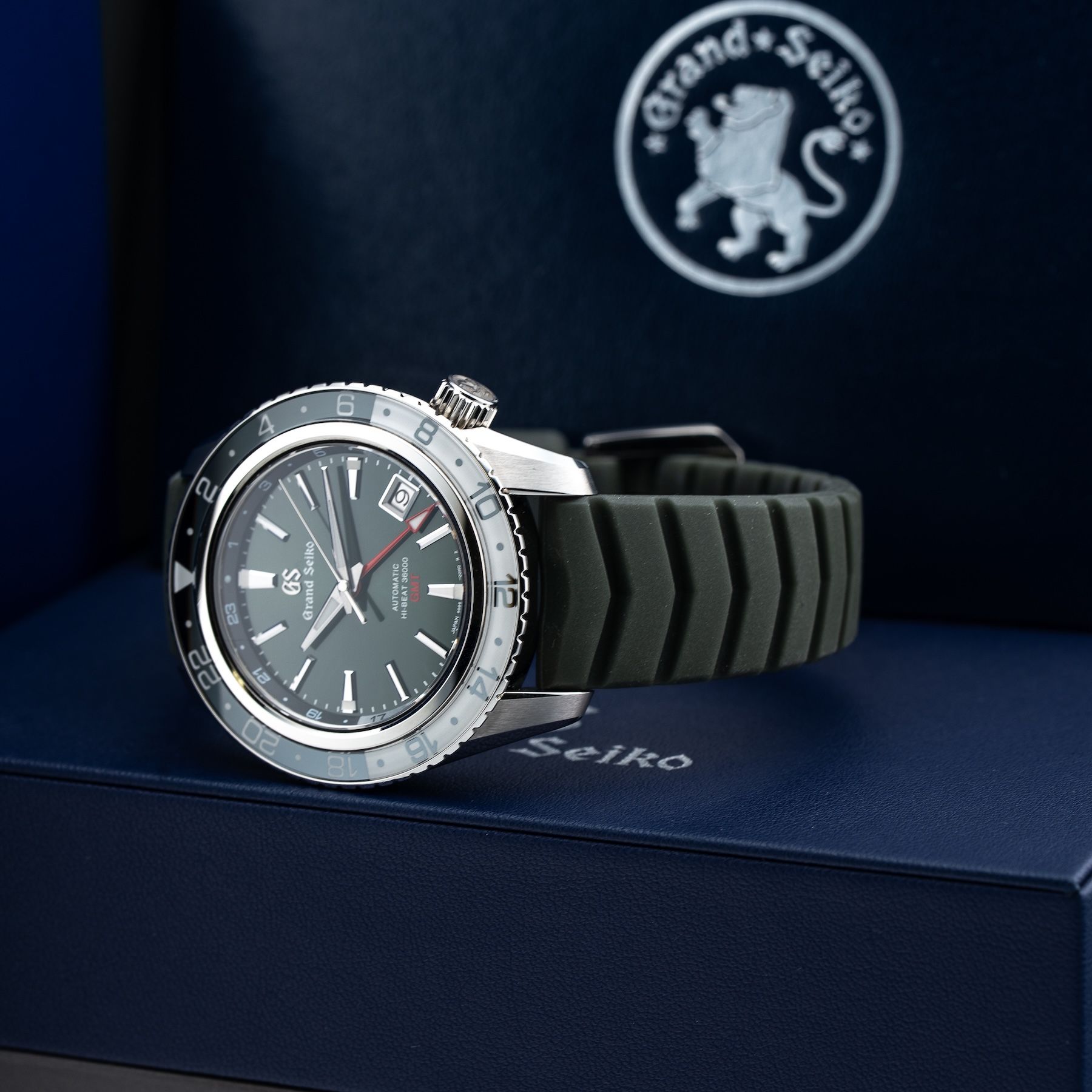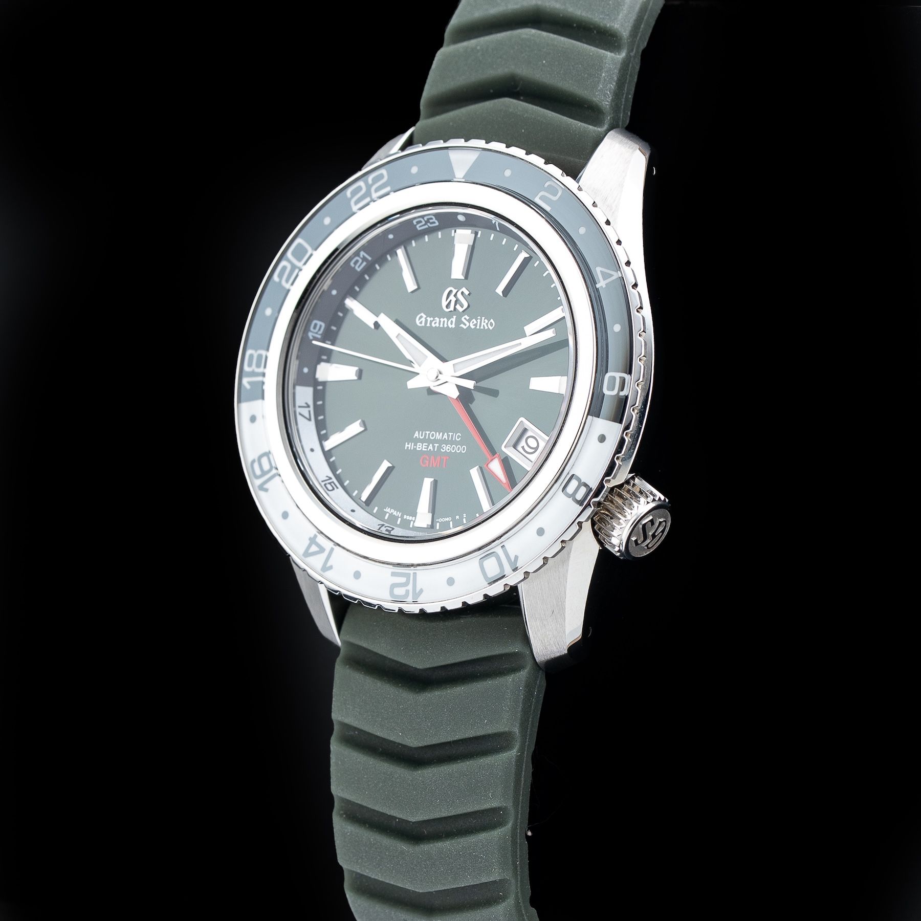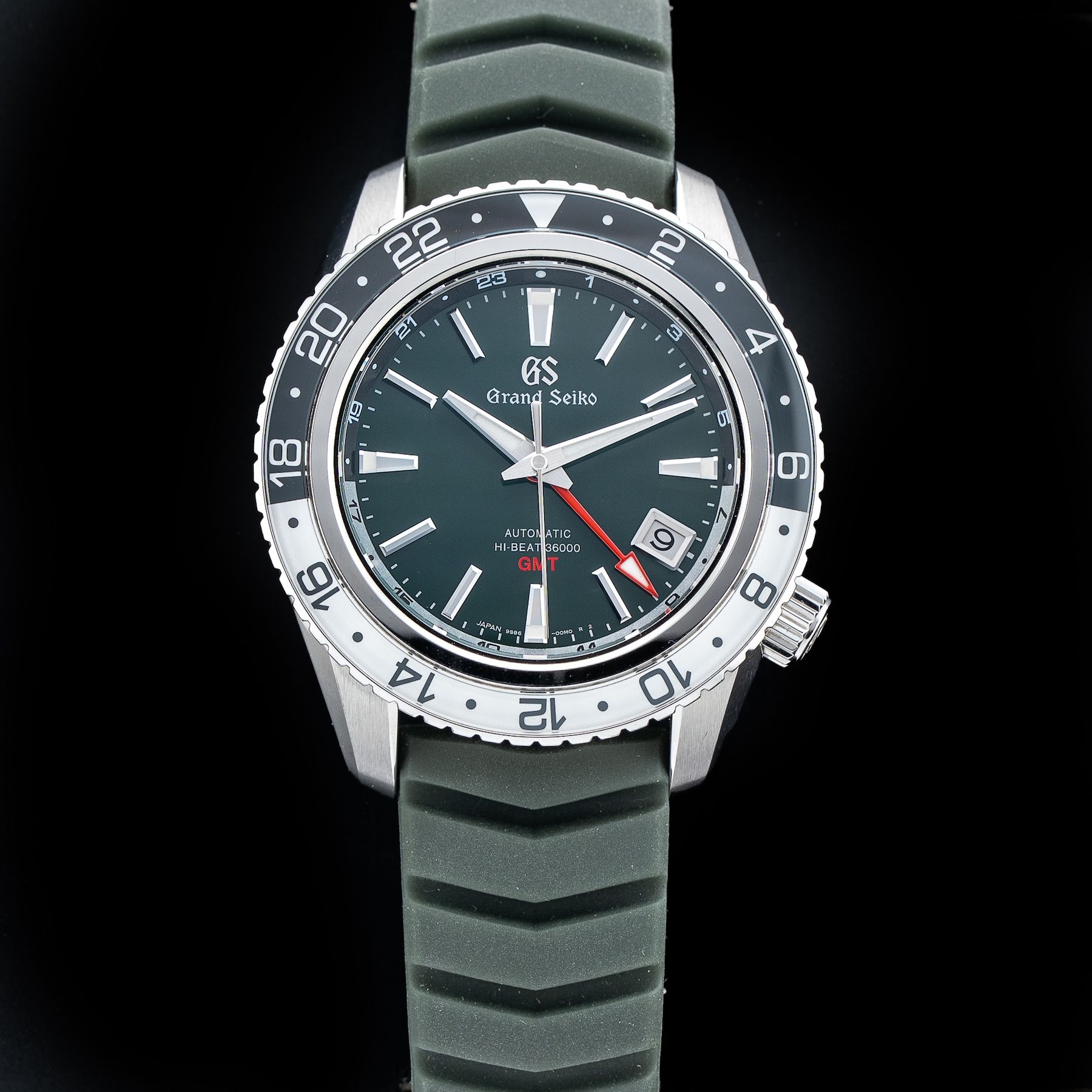 This Grand Seiko SBGJ239 Sport Hi-Beat GMT Green and White is in GREAT condition. Warranty card dated 6/10/23. This watch has been fully authenticated and certified by Exquisite Timepieces. Please note, the photos shown are of the actual watch you will receive.