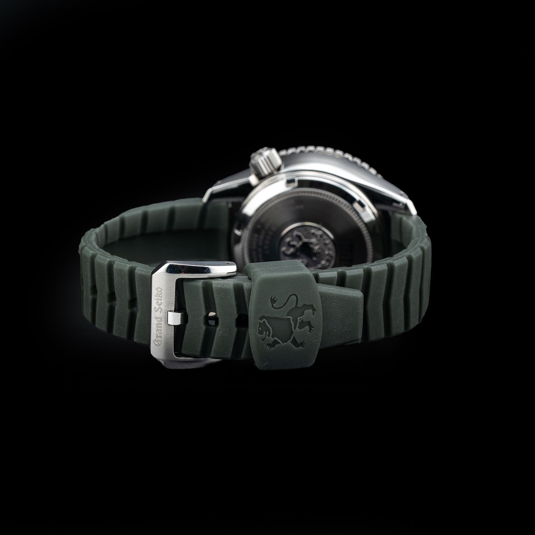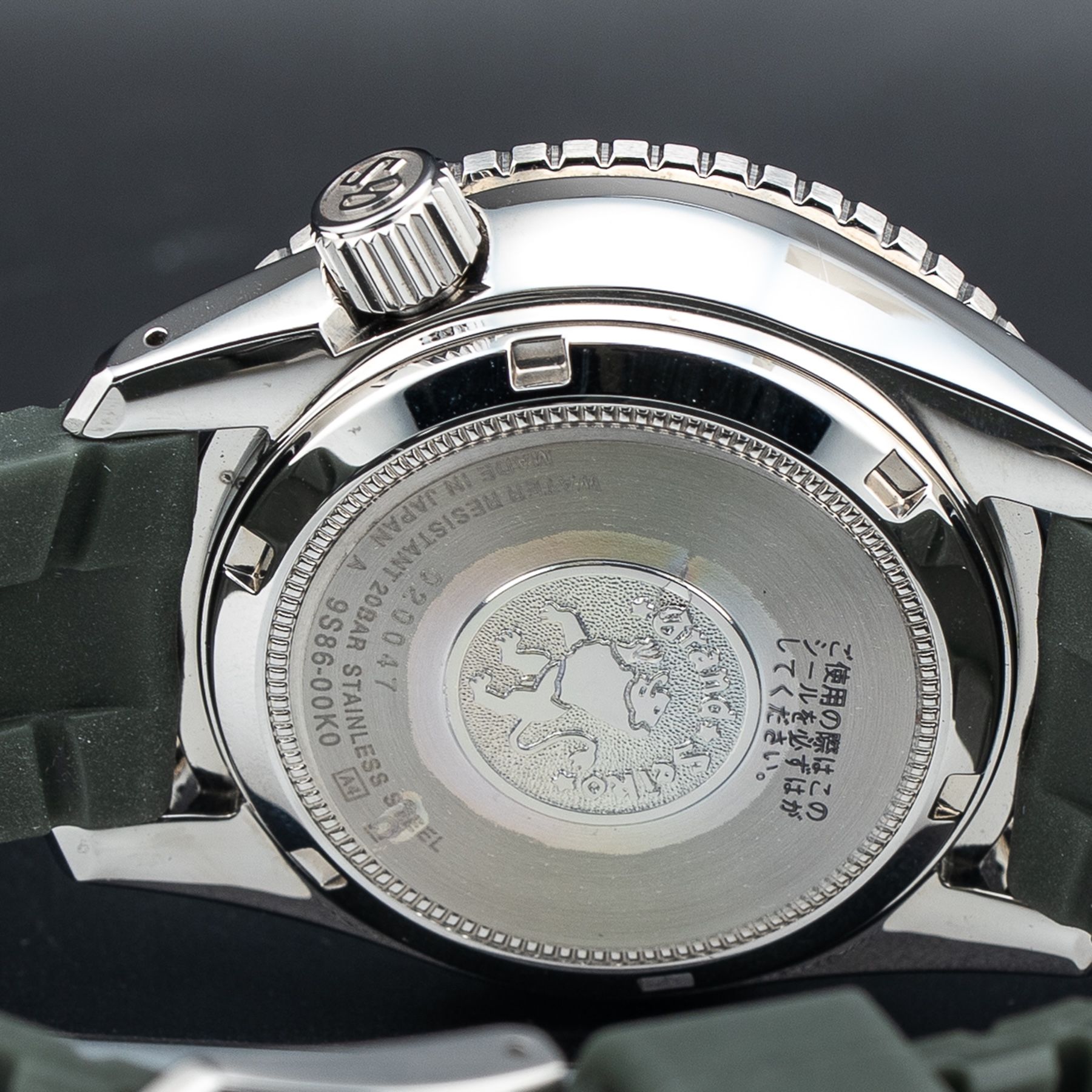 This watch features a 44.2mm steel case on leather strap. This watch also sports a green dial. Powered by an automatic 9S86 with manual winding movement. Water resistance up to 200 meters.