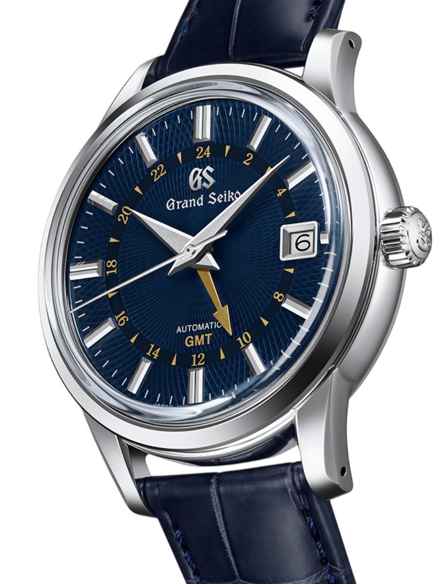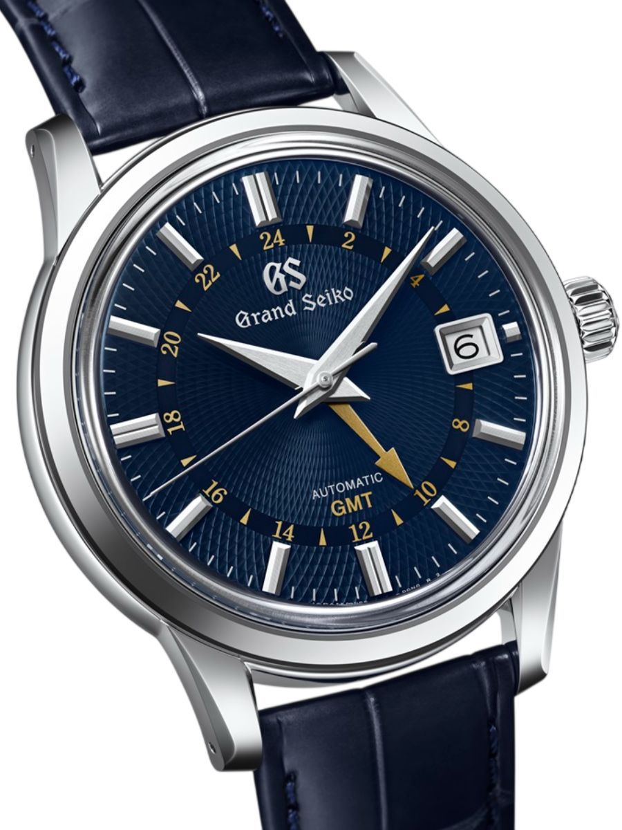 With its textured spiral dial, the SBGM257 captures a moment when the seasons are especially felt in Shizukuishi, the place where Grand Seiko mechanical watches are made. The dial vividly recalls a time of year when moonlight is reflected by drops of dew in a delicate expression of autumnal beauty. A rich contrast results from the gold-colored GMT hand and the navy-blue textured dial.