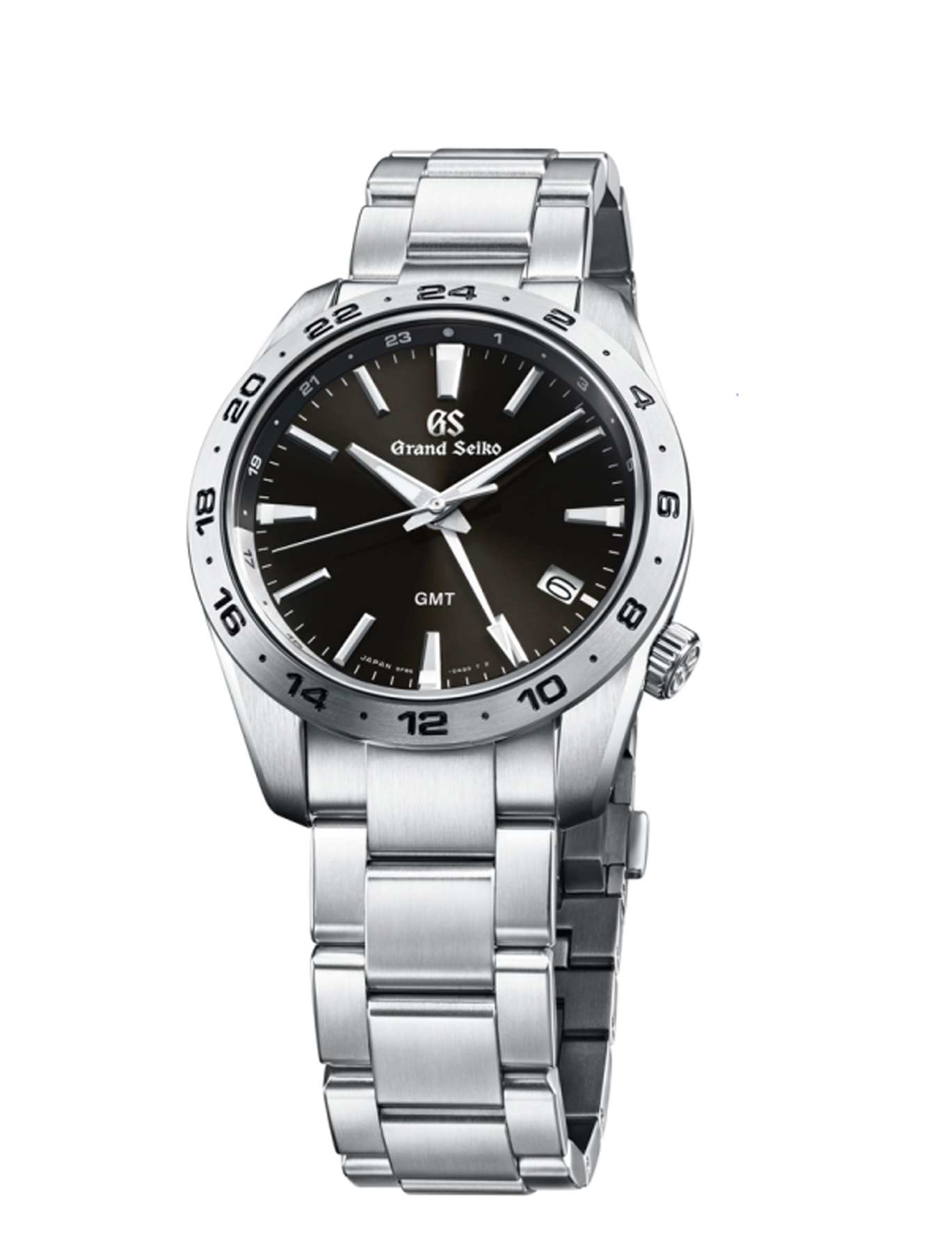 Caliber 9F was developed to allow the creation of the ultimate quartz watch and is now widely recognized as one of the finest quartz calibers in the world. The suitability of this remarkable Grand Seiko quartz movement to the international traveler is enhanced by the addition of a GMT hand. The high precision (+/- 10 seconds a year) of Caliber 9F86 is not compromised when the time zone is changed as the watch continues to keep perfect time even when the crown is pulled out and the hour hand is moved to adjust the local time. The GMT hand is clearly differentiated in design from the hour and minute hands and the 24-hour dial ring is divided into two 12-hour sections to allow AM and PM to be easily distinguished.