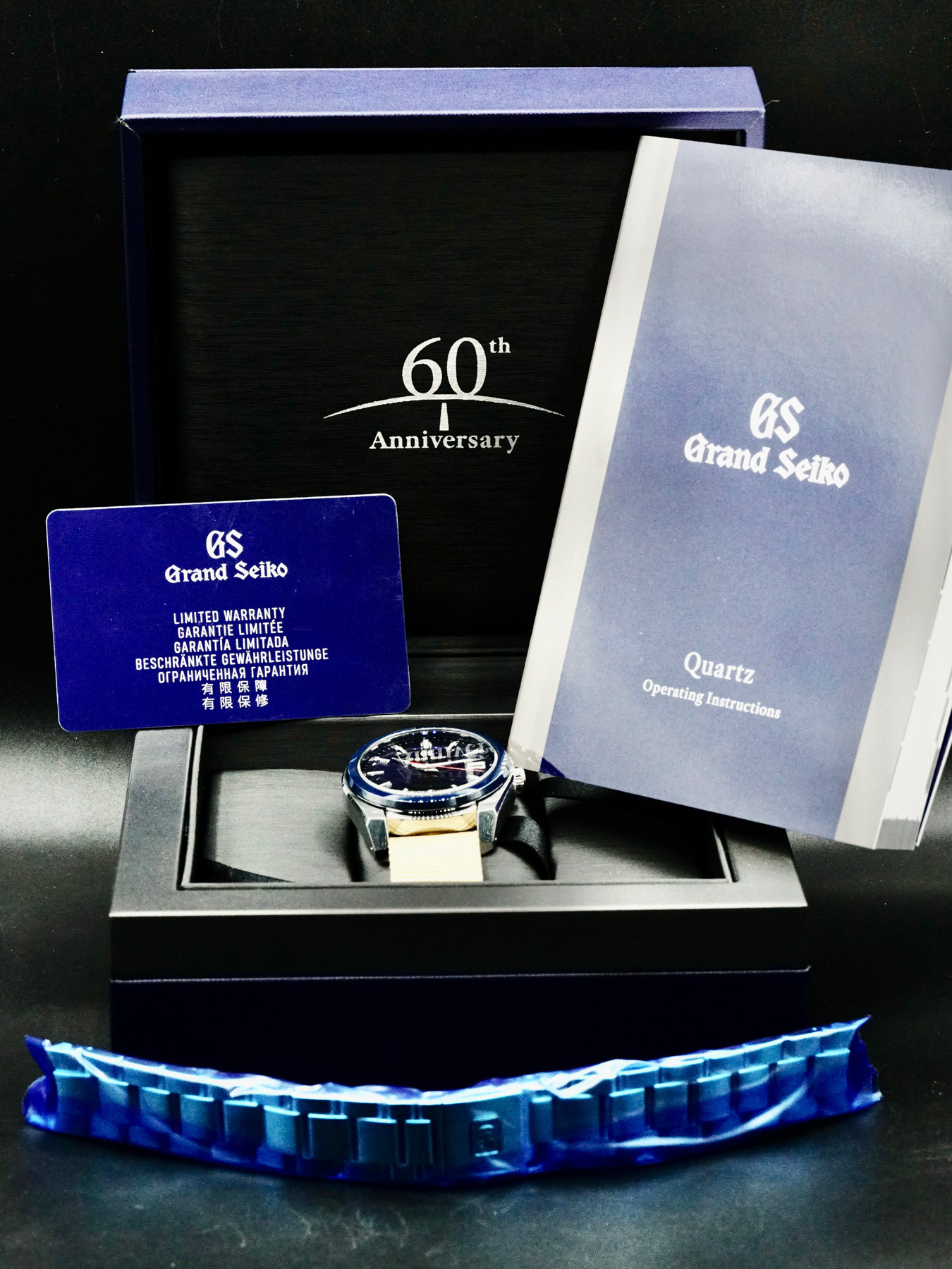 This Grand Seiko SBGP015 Blue Dial Limited Edition is in EXCELLENT condition. This watch includes its original box, operating instructions, and limited warranty card dated for July 2023. Extra stainless steel bracelet.