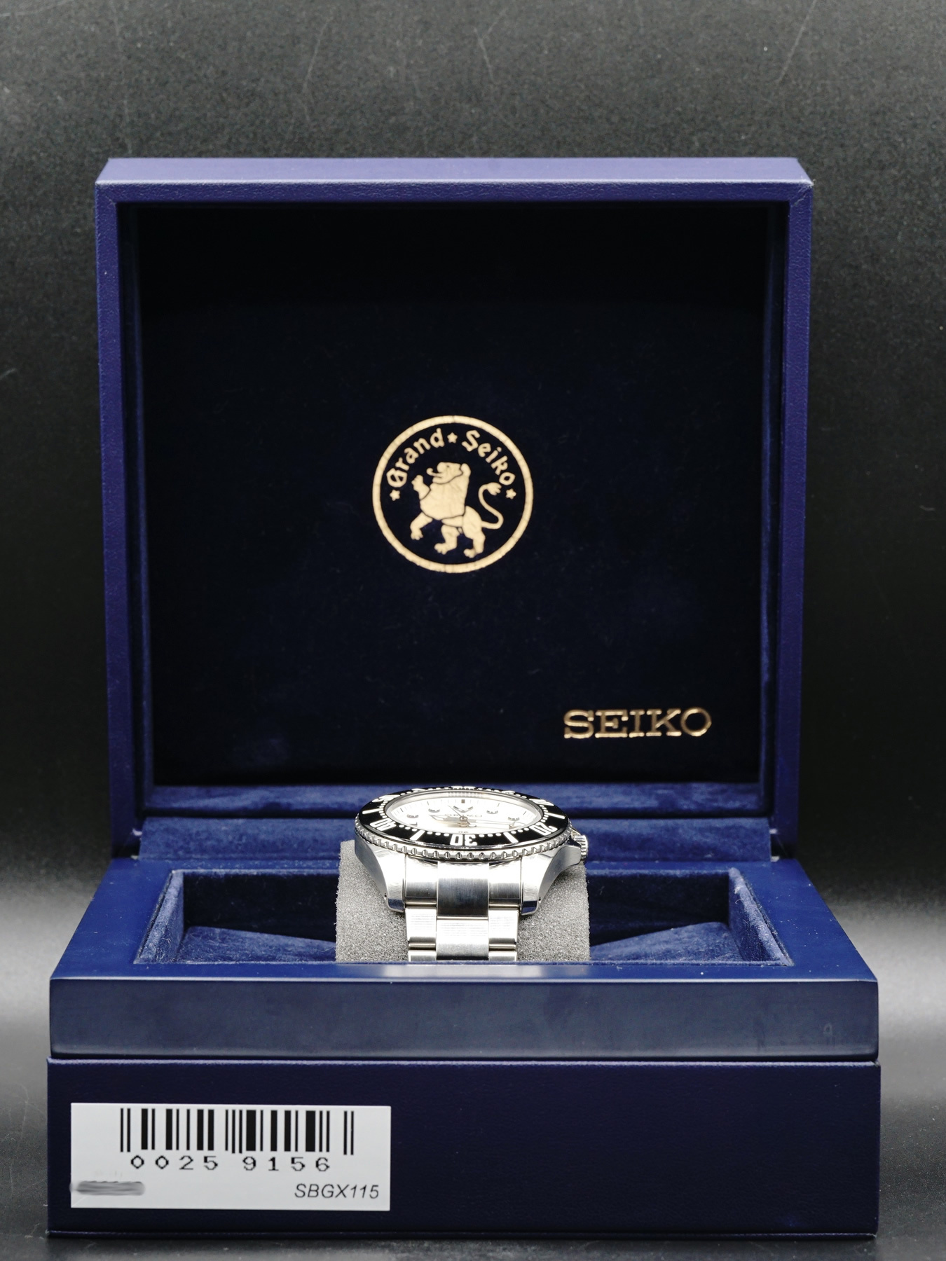 This Grand Seiko Quartz Diver SBGX115 is in EXCELLENT condition. This watch includes its original box and Repair Report of Grand Seiko. Extra stainless steel bracelet link.
