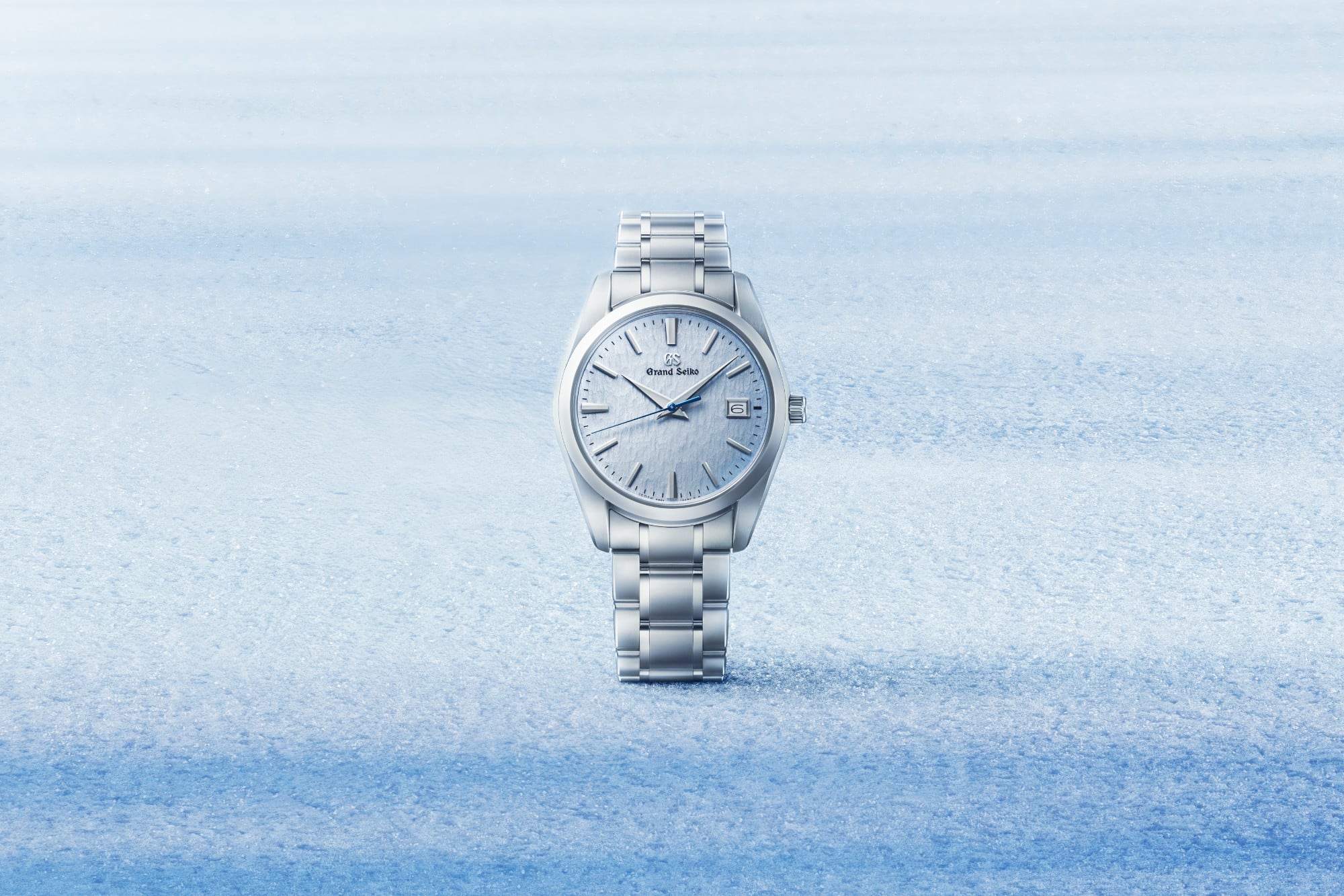 Visible from the Shinshu Watch Studio, where quartz watches are made, the Hotaka mountain range is blanketed with snow for several months each winter. The snow in these mountains is shaped by fierce winds that carve patterns into its surface, a phenomenon that forms the basis of this watch’s “snowflake” pattern dial. The light blue color, which inspired the “Skyflake” moniker, evokes the wind-swept snow reflecting the bright blue sky above on a clear winter’s day. The tempered blue seconds hand ticks across the dial, capturing the quiet passage of time and enhancing the watch’s elegant evocation of winter in Shinshu.